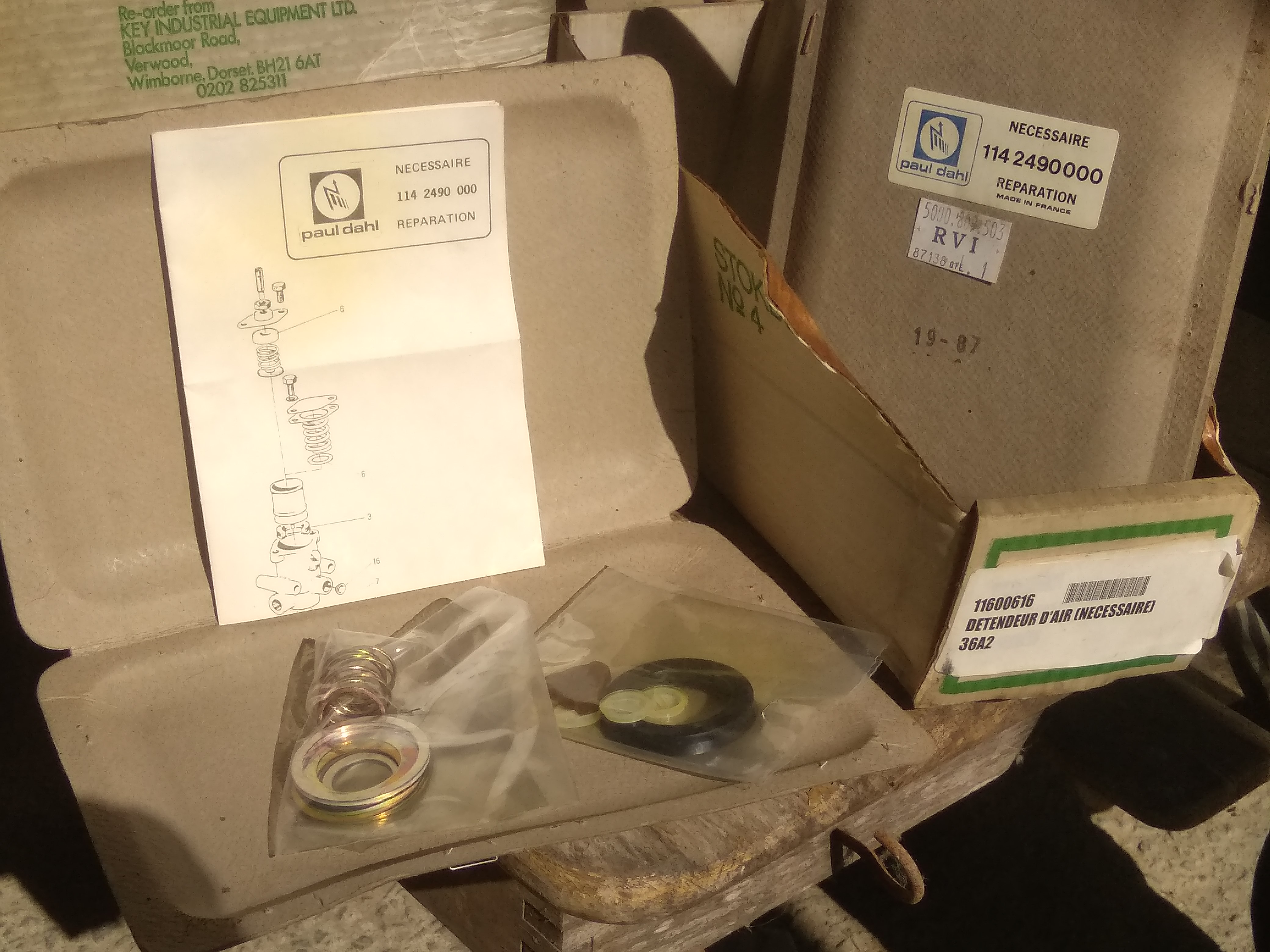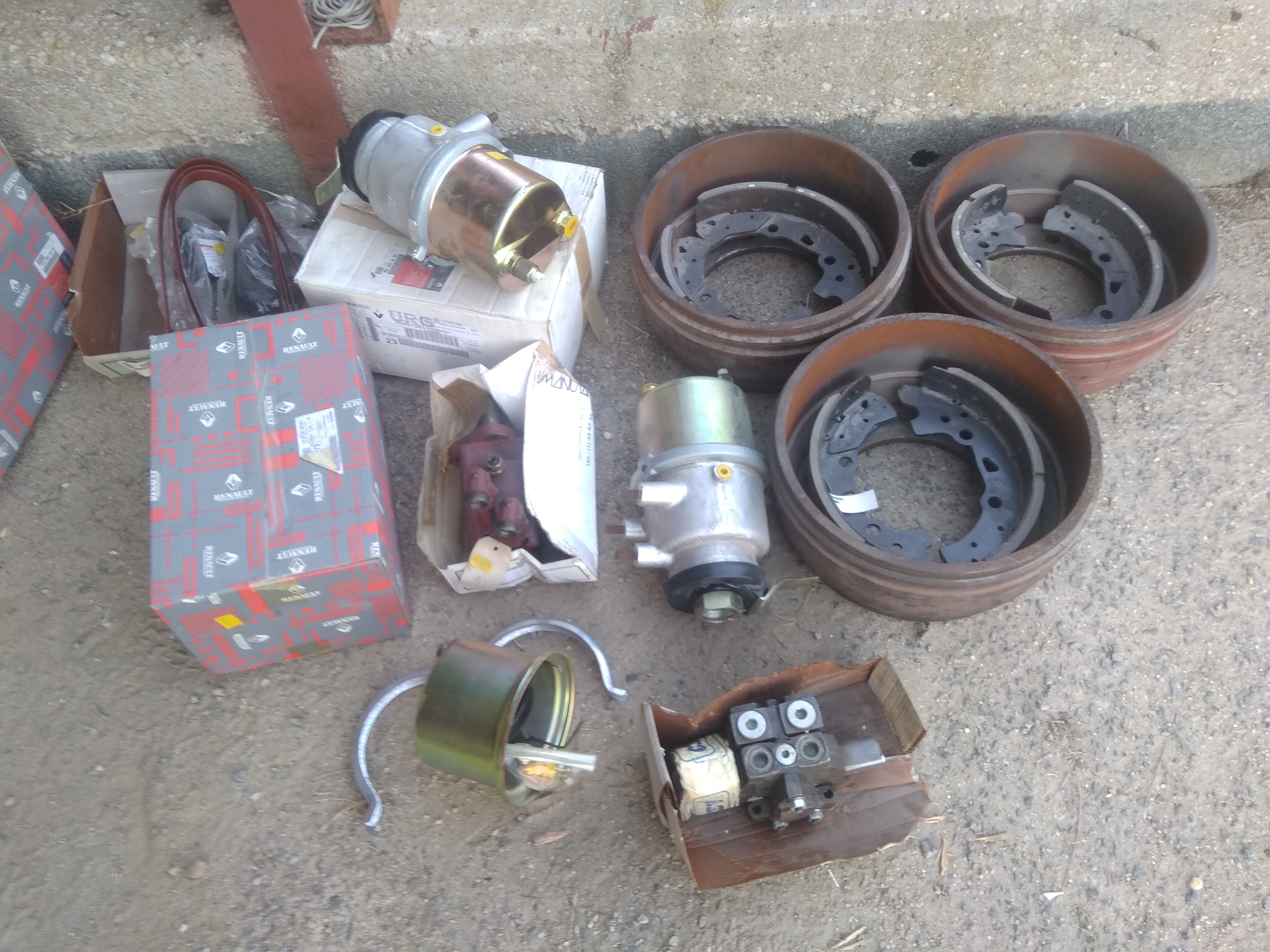 la quasi totalité des pièces sont neuve, système pneumatique, freinage, électrique, hydraulique, carrosserie, quincaillerie, joint, kit de réparation de pièce pneumatique, transmission....