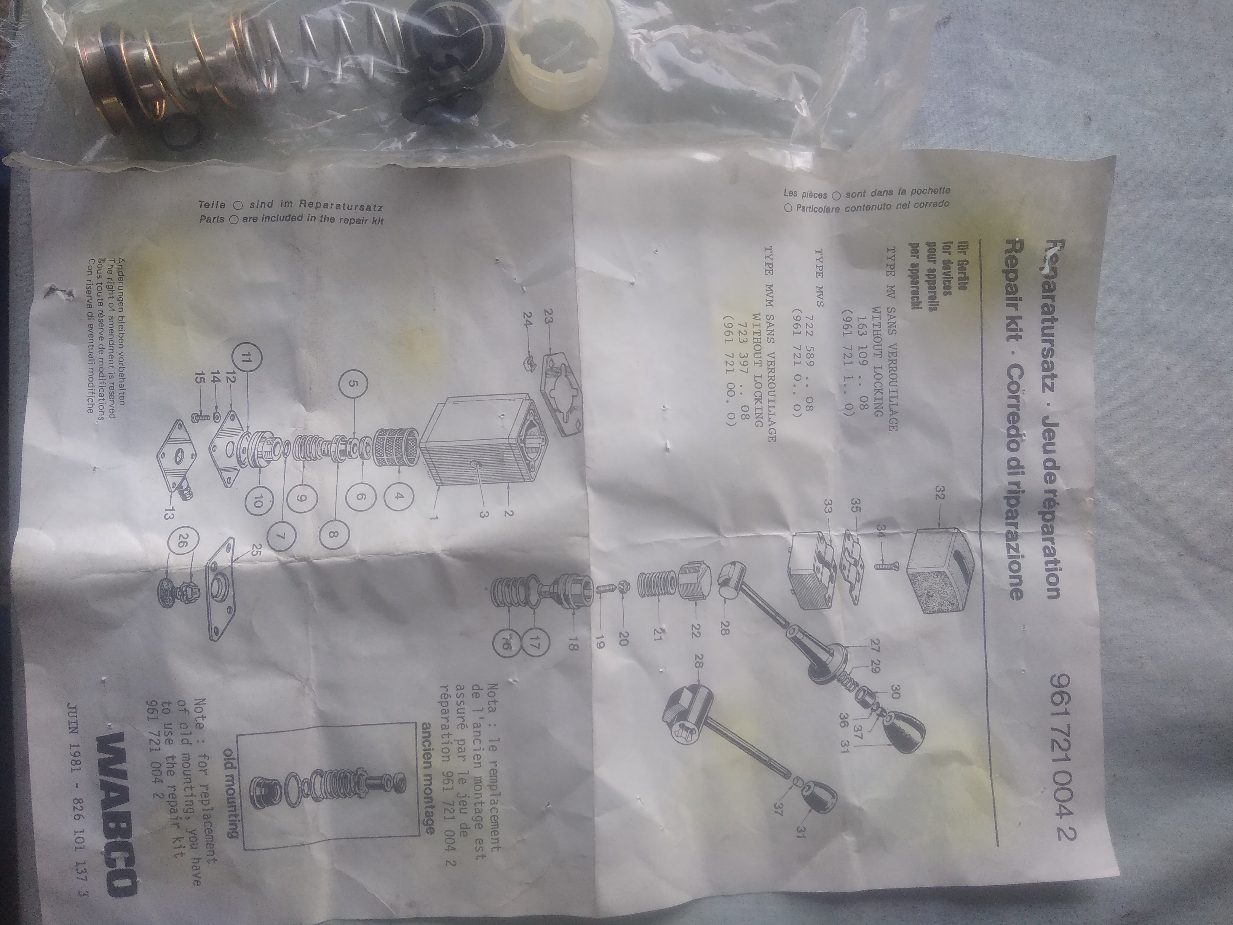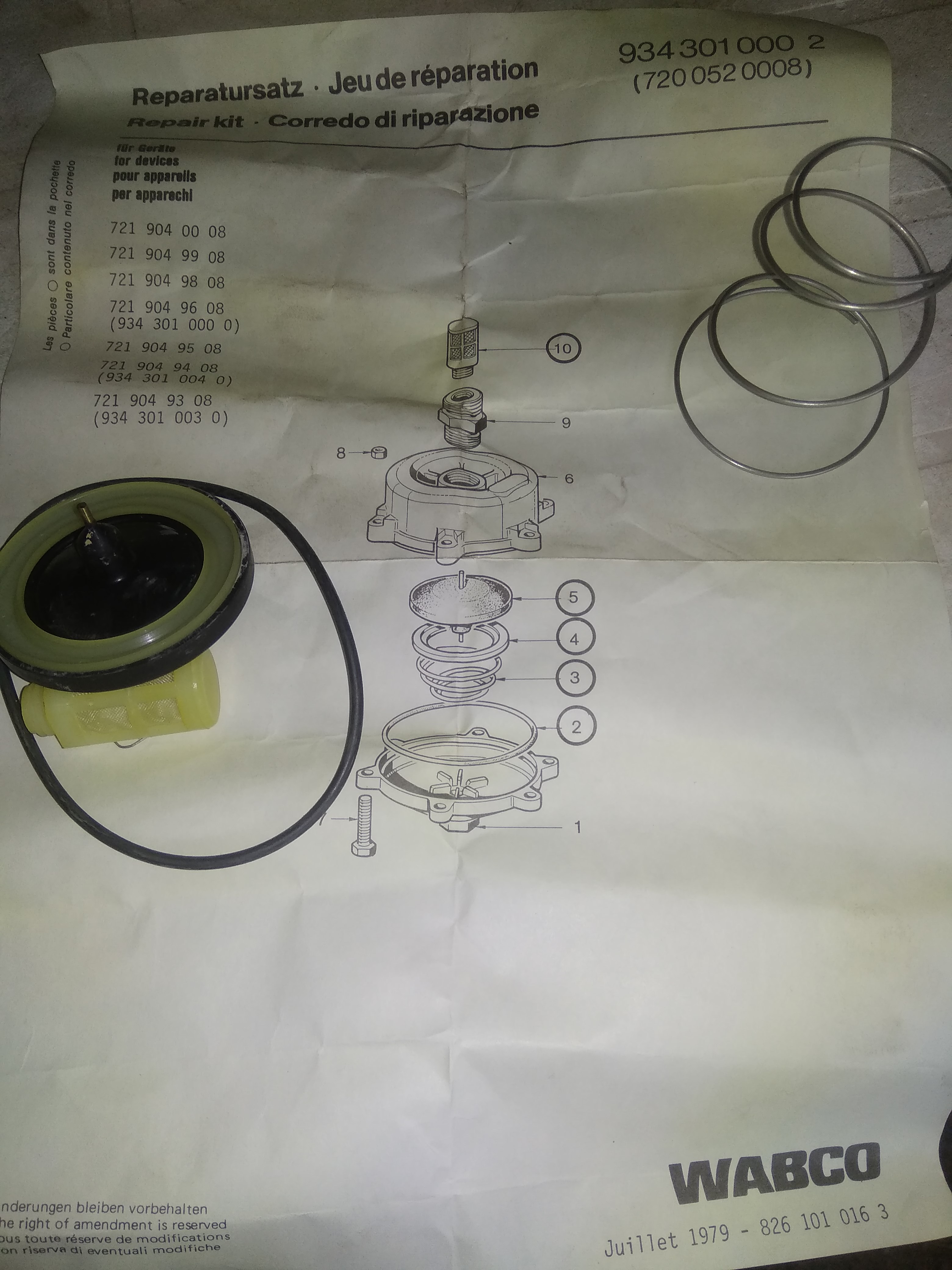-kit réparation com. frein parc Wabco 9617210000 9617210042 20 70e