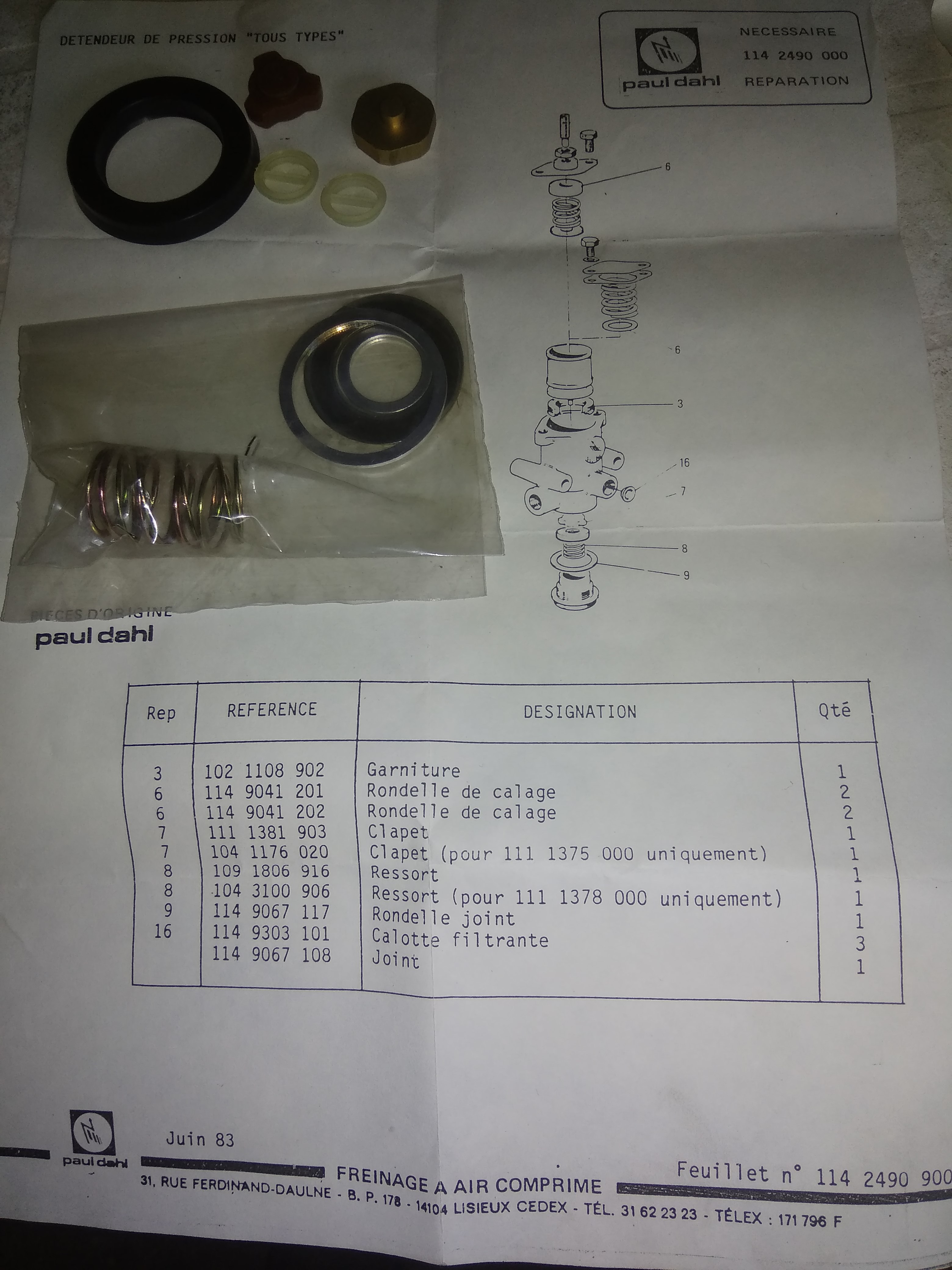 -kit réparation régulateur d'air (tout type) 5000809503 3 15e
