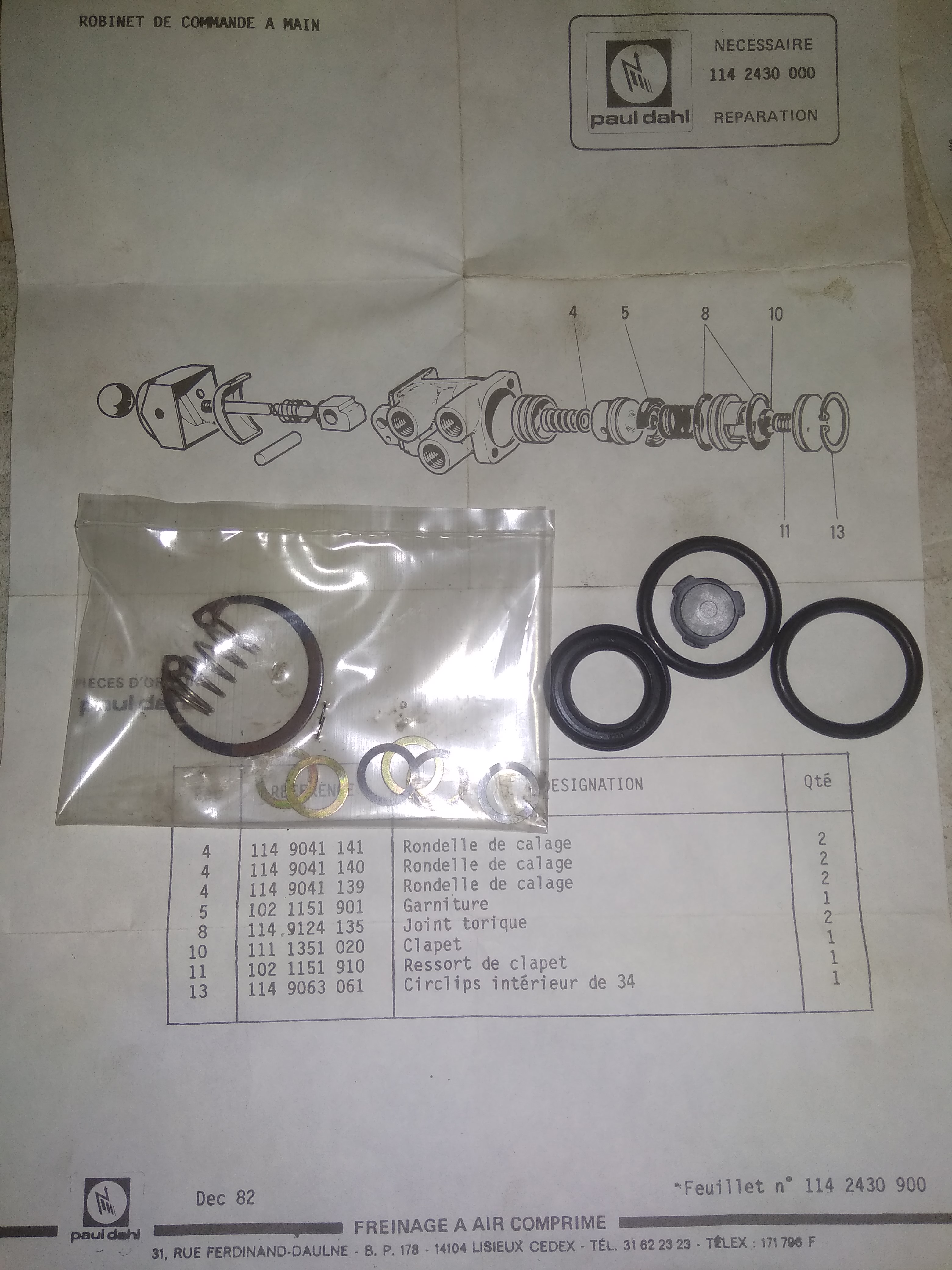 -kit réparation commande frein parc 1043135000 1142430000 5 50e