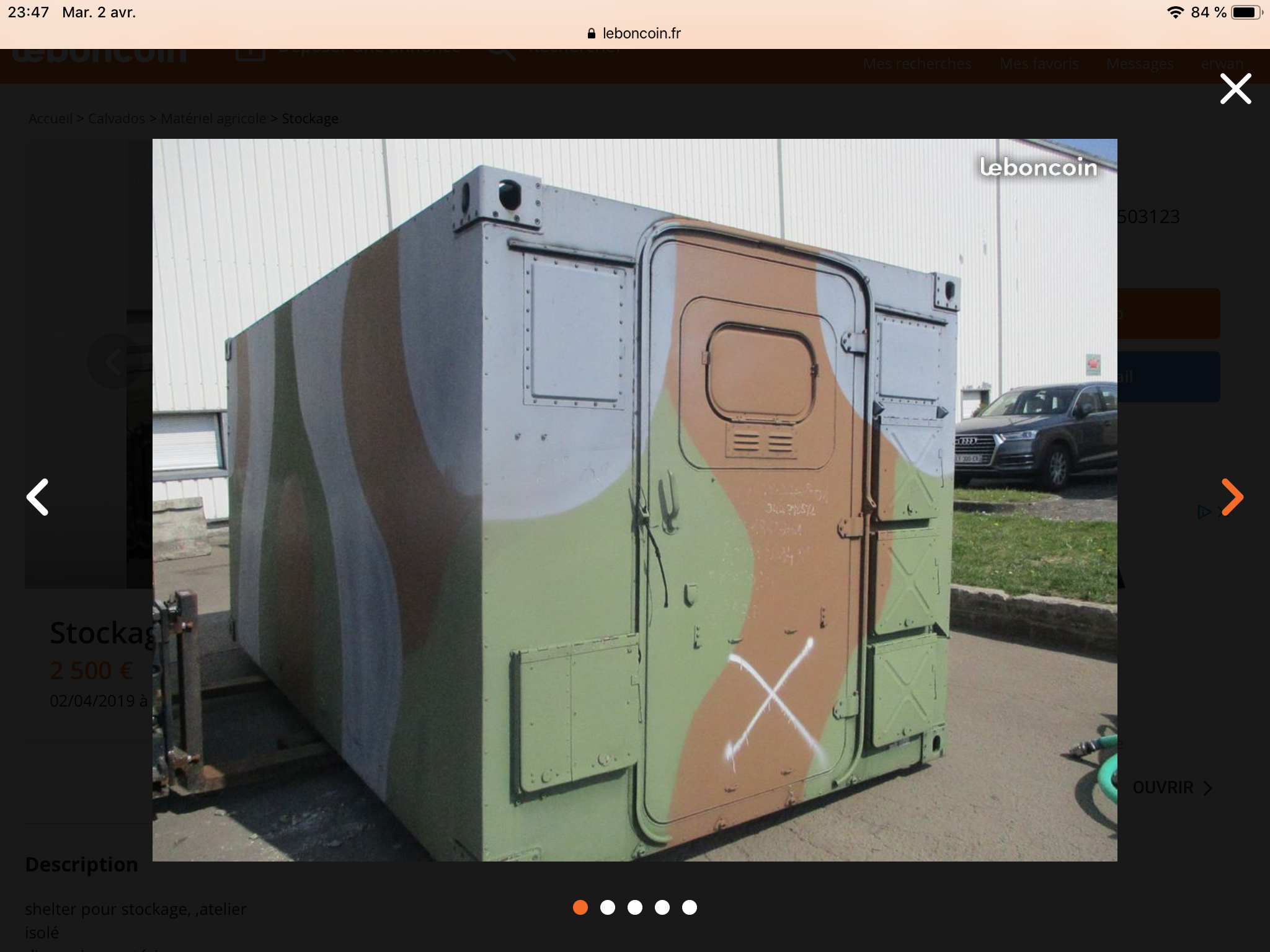 Le shelter est un FM 2 que j’ai trouvé sur le bon coin. Je l’ai payé 3000 euros avec plein de matériel à l’intérieur que du coup j’ai revendu.
