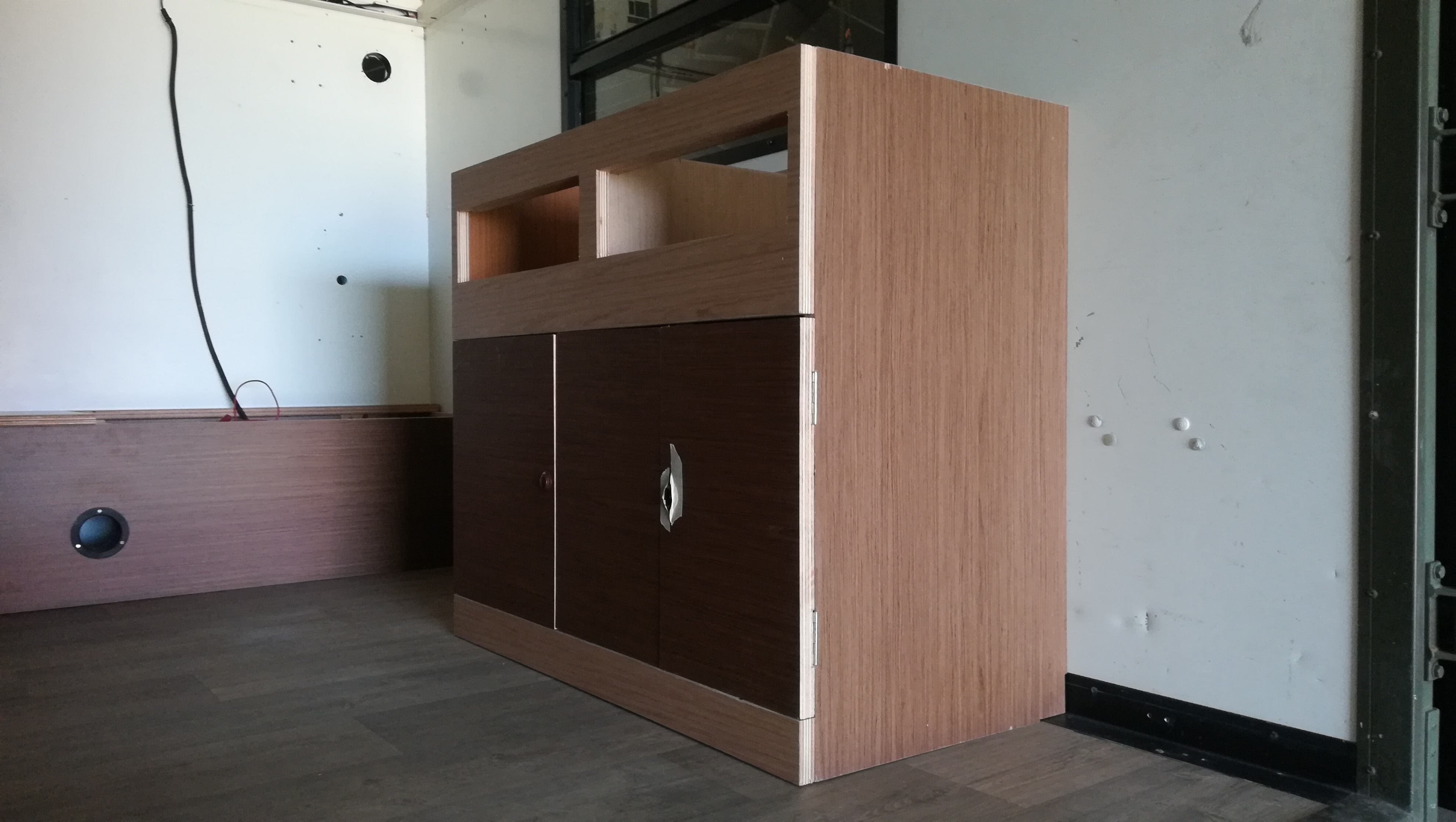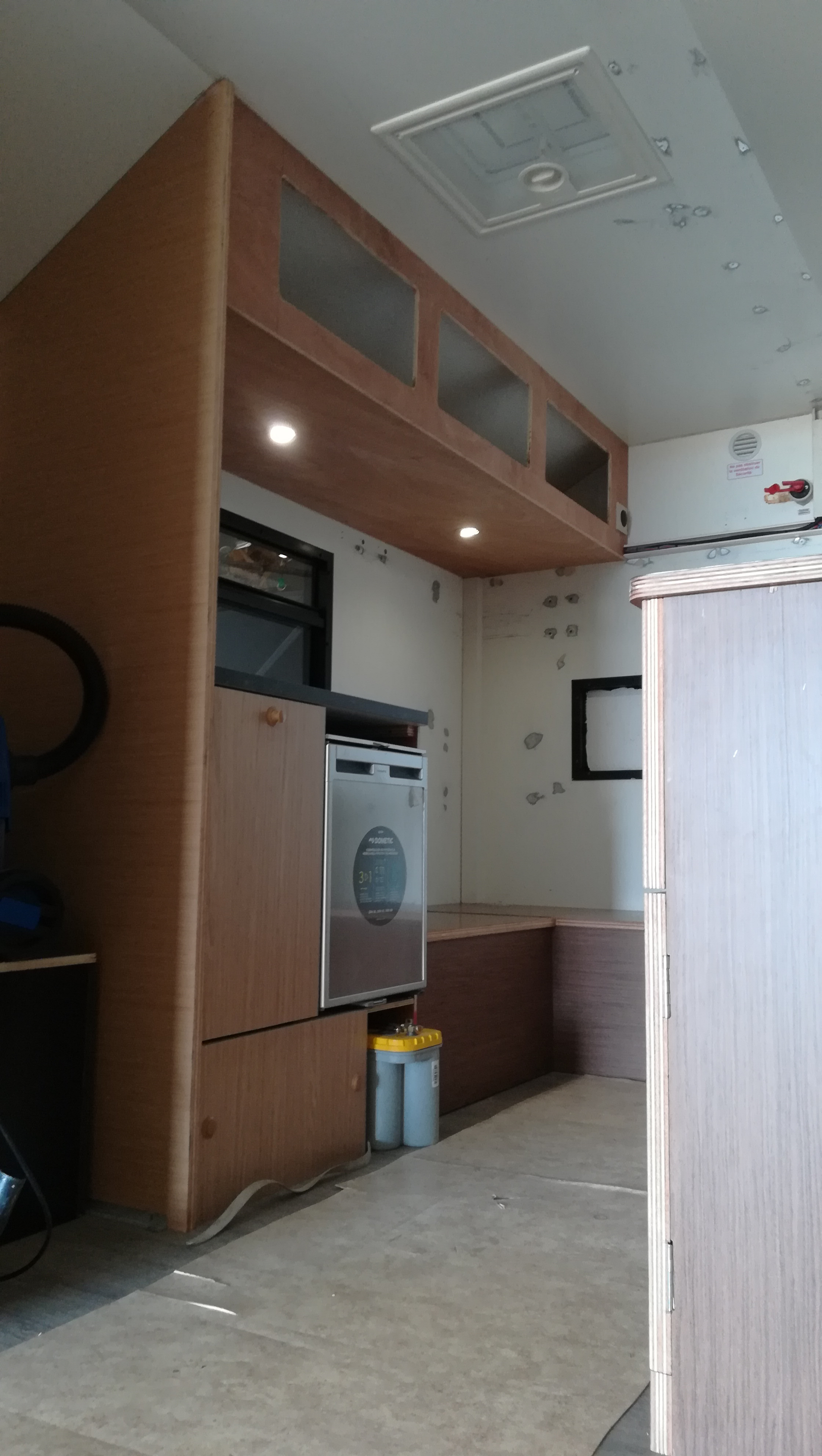 Le bois utilisé peux paraître épais en effet il l'est ! c'est du 20mm mais il n'est pas très lourd. C'est du CP utilisé dans la construction des aménagement de bateaux. léger, stratifié, résistant et facilement lavable idéal pour un camion de voyage!