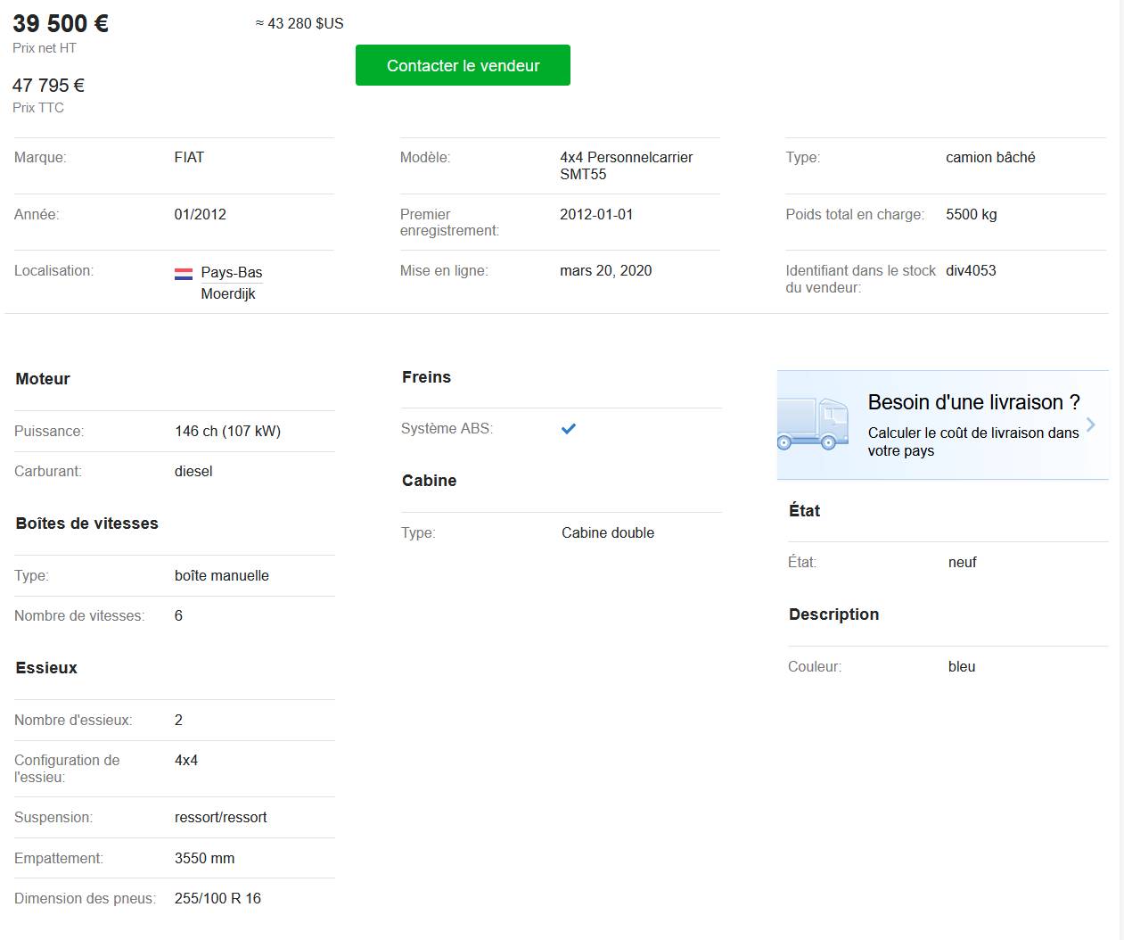 je sais pas (plus) si s'est importable en france,mais a ce prix,s'est un bon bahut: 8140.43s,pont carraro,boite zf,treuil....il est de 2012 mais y a une bonne base...