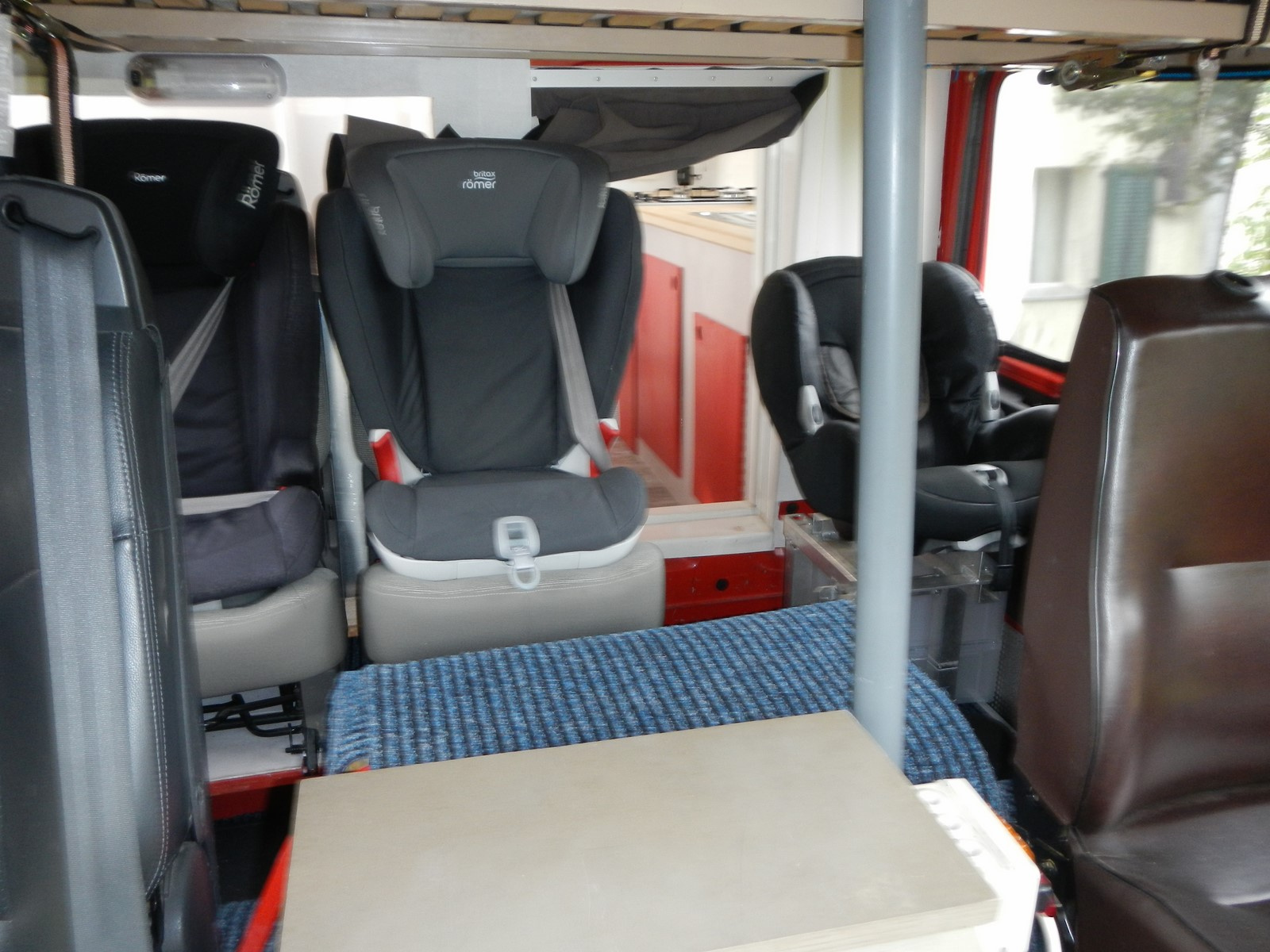 • 2 sièges avant et 2 sièges + un siège bébé à l’arrière de la cabine (3 sièges type scénic avec ceinture de sécurité et un siège d’origine, mais un 4ème siège de sénic à monter).
