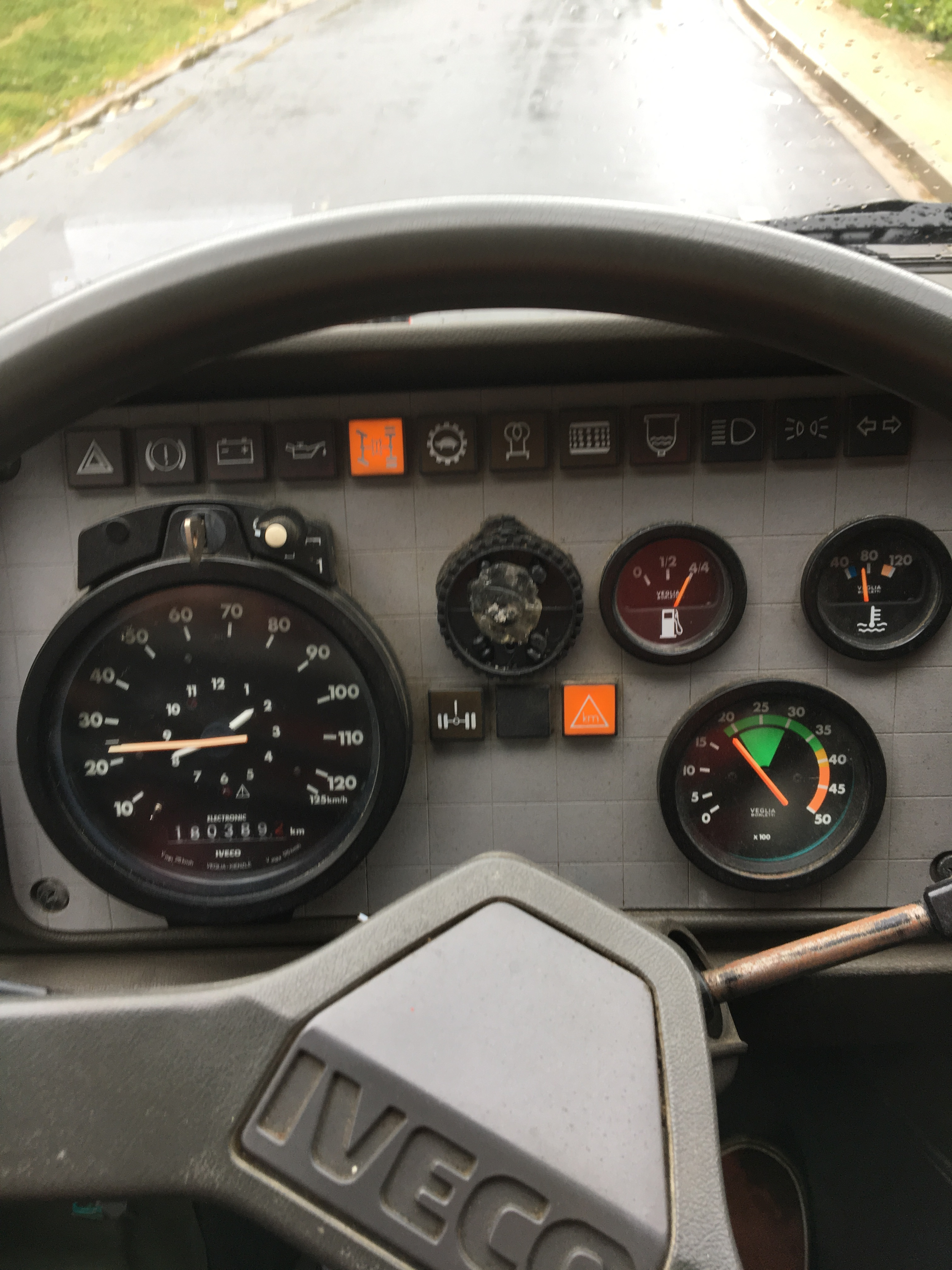 Comme tu roules à pleine vitesse, le compte-tours sur la boîte de vitesse en rajoute une couche : "vitesse excessive".