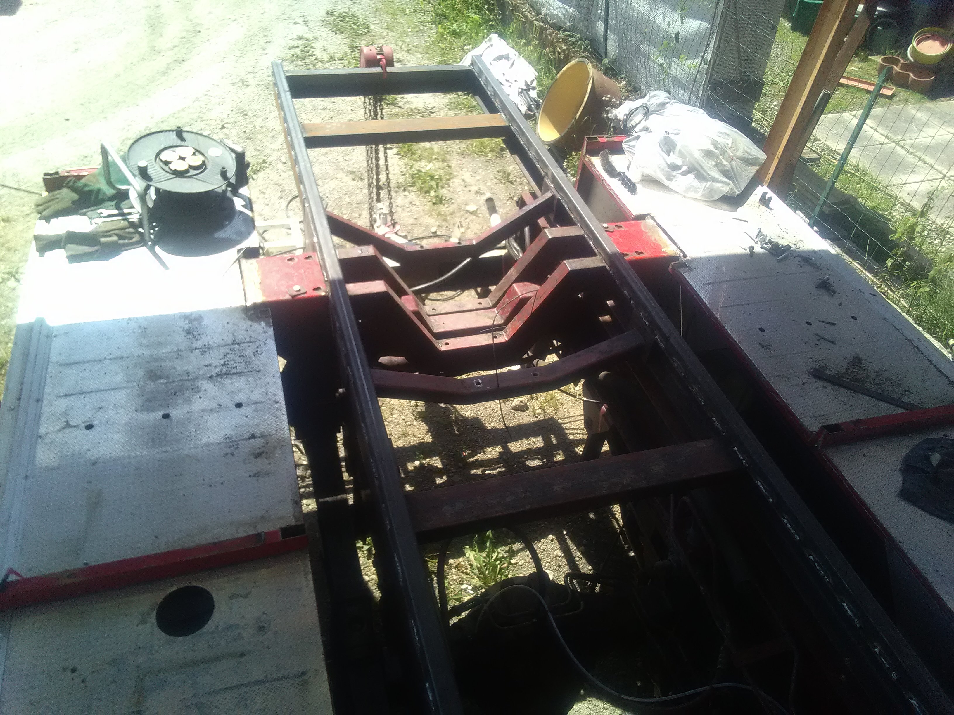 Bonjour à tous . Ça avance petit à petit pour la caisse , l'armature est fixé et collé . La récupération et transformation de la porte m'a donné du fil a retordre mais le plus gros est fait quelques finitions et trouver une fermeture 3 points .Je m'attaque au châssis de la caisse ,gratter ,primaire, peinture antirouille , récupération des plaques alus de la cellule pompier pour les fixer sur les traverses sous le châssis de la caisse . En parallèle préparation du porteur pour réception de la caisse les soudures sont bientôt fini peinture du faux châssis et pause de la caisse pour voir ce que ça donne .
