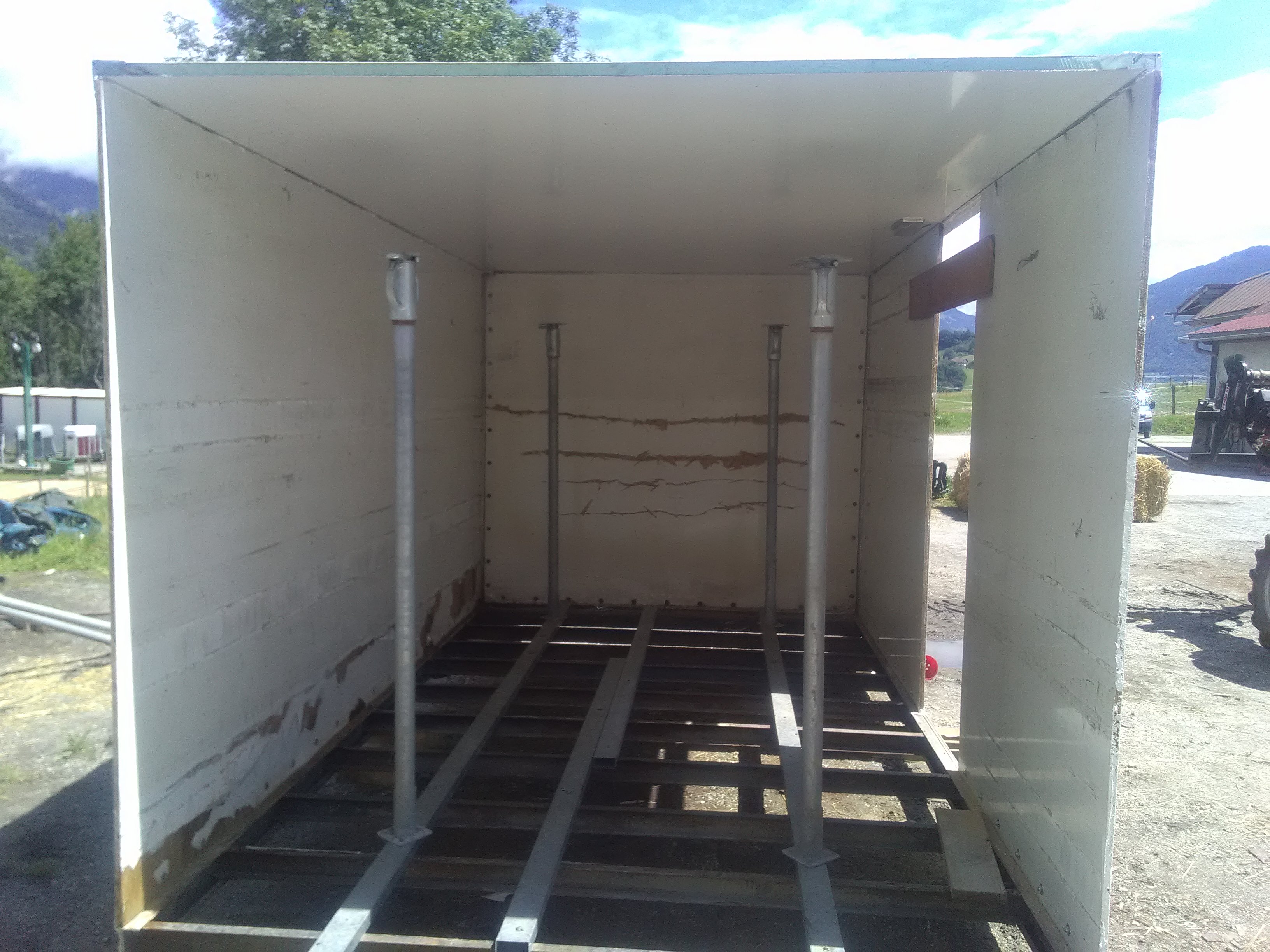 Suite des travaux transformation et allongement du faux châssis dans le respect du barré rouge après avoir descendu les caissons et passages de roues de 10 cms. En parallèle reconditionnement de la cellule . 3m80 L par 2m35 L 1m95 H dimensions intérieur, pour arriver à une hauteur final espéré de 3m60 max avec panneaux Il m'a fallu changer des panneaux polyfond qui étaient pourris au fond , donc voila le boulot reconstruction de la cellule .