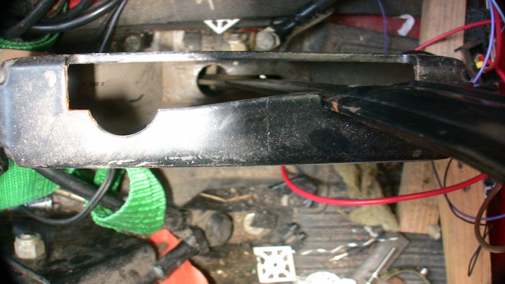En inspectant sous le camion je me suis rendu compte que l'axe qui coulisse dans le poumon pour actionner le blocage était cassé, certainement dû à un choc car la plaque de protection était bien enfoncée