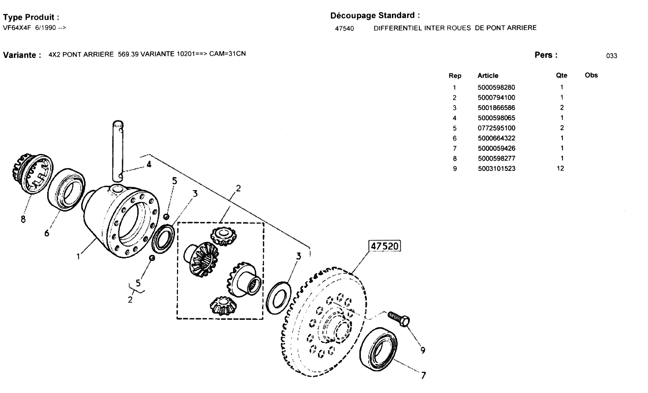 Si vous avez un jour un soucis dans le mécanisme du différentiel lui même voici les fiches RVI ça peut servir :