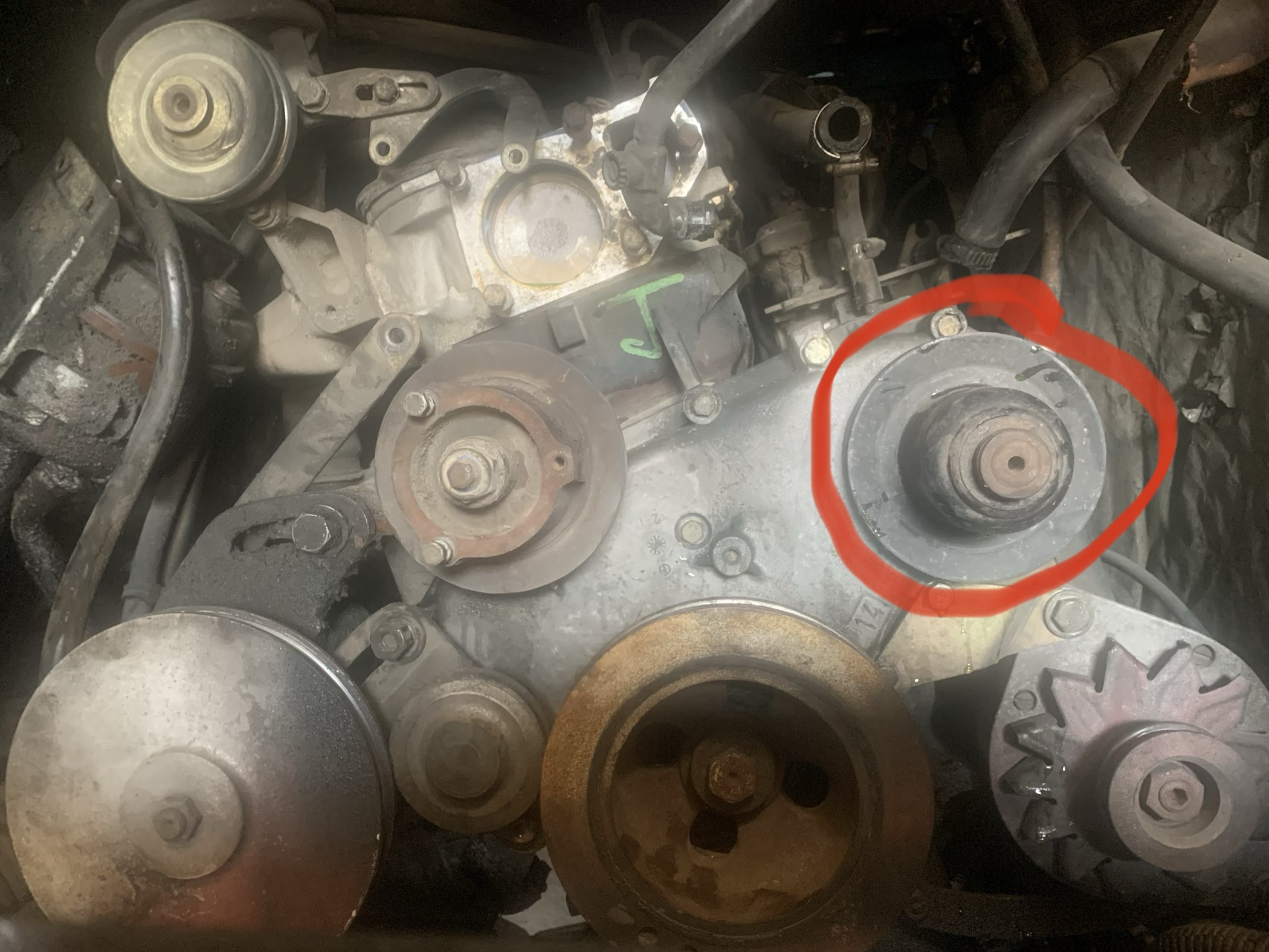 Concernant les courroies, ci-joint une photo du moteur vu de face.