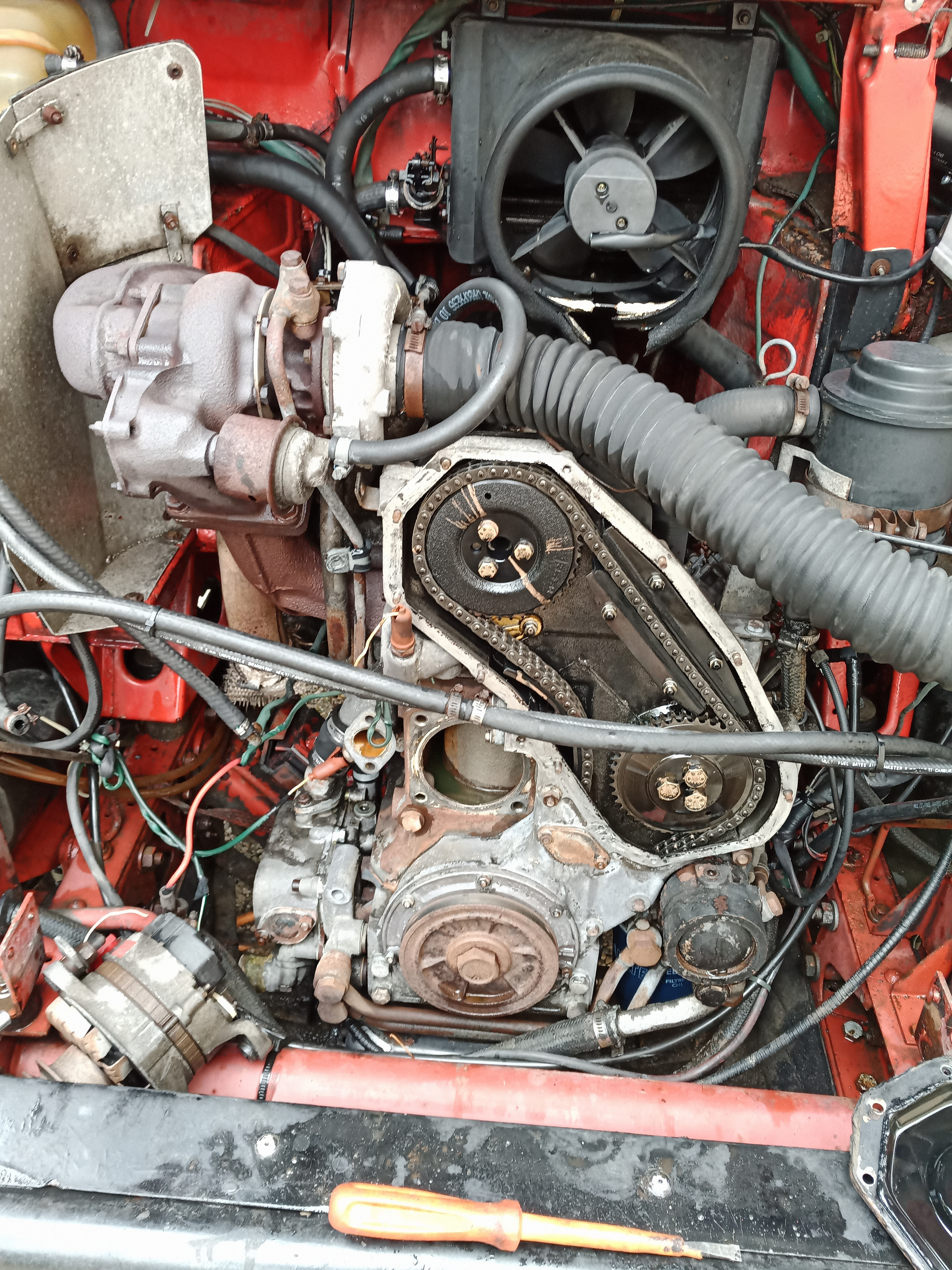 Voilà changement pompe à eau nettoyage radiateur et une petite tentions de la chaîne et surprise la durite de retour d eau était colmaté donc nettoyage j'espère que la bête chauffera moin après sa sera pompe électrique et gros radiateur 😈😈😂😂
