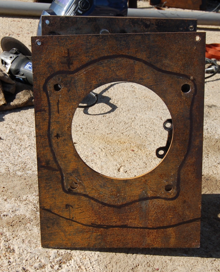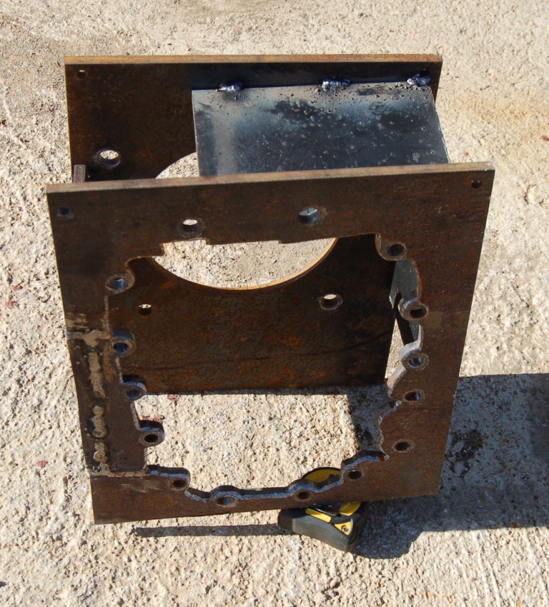 tu vois sur les photos que j'ai pris une emprunte de l'extérieur de l'arrière de la boite ZF5 200 j'ai bien laissé la boite entière mais j'ai greffé un carter acier sur les vis (à partir) des vis (boulons) que j'ai rallongées de 8mm par rapport à ceux existant déjà sur la boite 5ZF200 j'ai fais aussi un carter pour adapter du côté boite de transfert et soudé des plaques intermédiaires entre les 2 carters d'assemblages qqs heures de travail