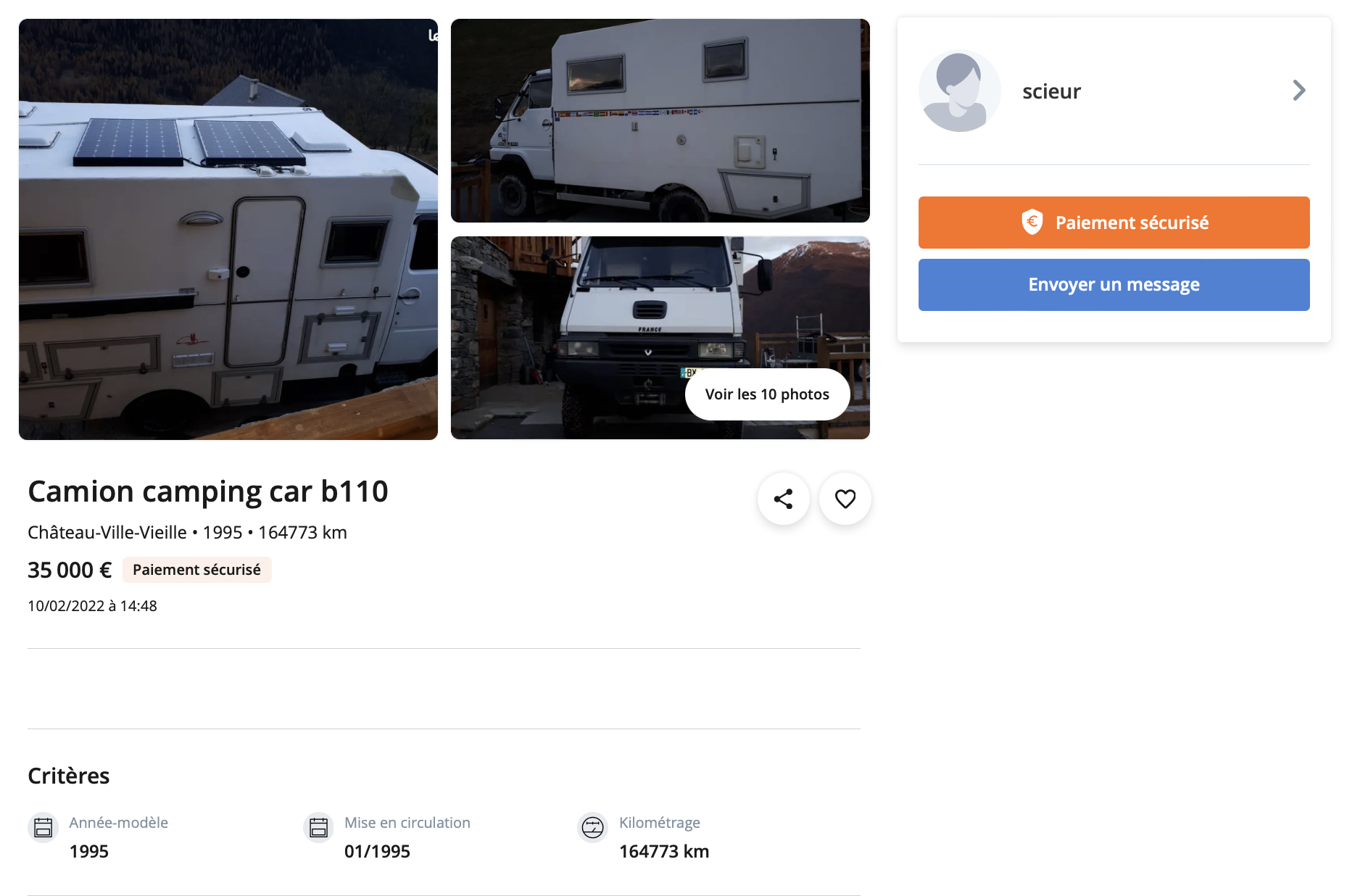 et 3700 km ... bon rien n'indique qu'il a été vendu entre deux ni au prix indiqué mais sinon ça fait tout de même 2e70 du kilometre en plus du prix du gasoil....Denis Chassac a écrit : 11 févr. 2022 01:56C'est un gros poil tout de même : 10 000 €. C'est vrai qu'en un an, il a eu le temps de pousser...![]()