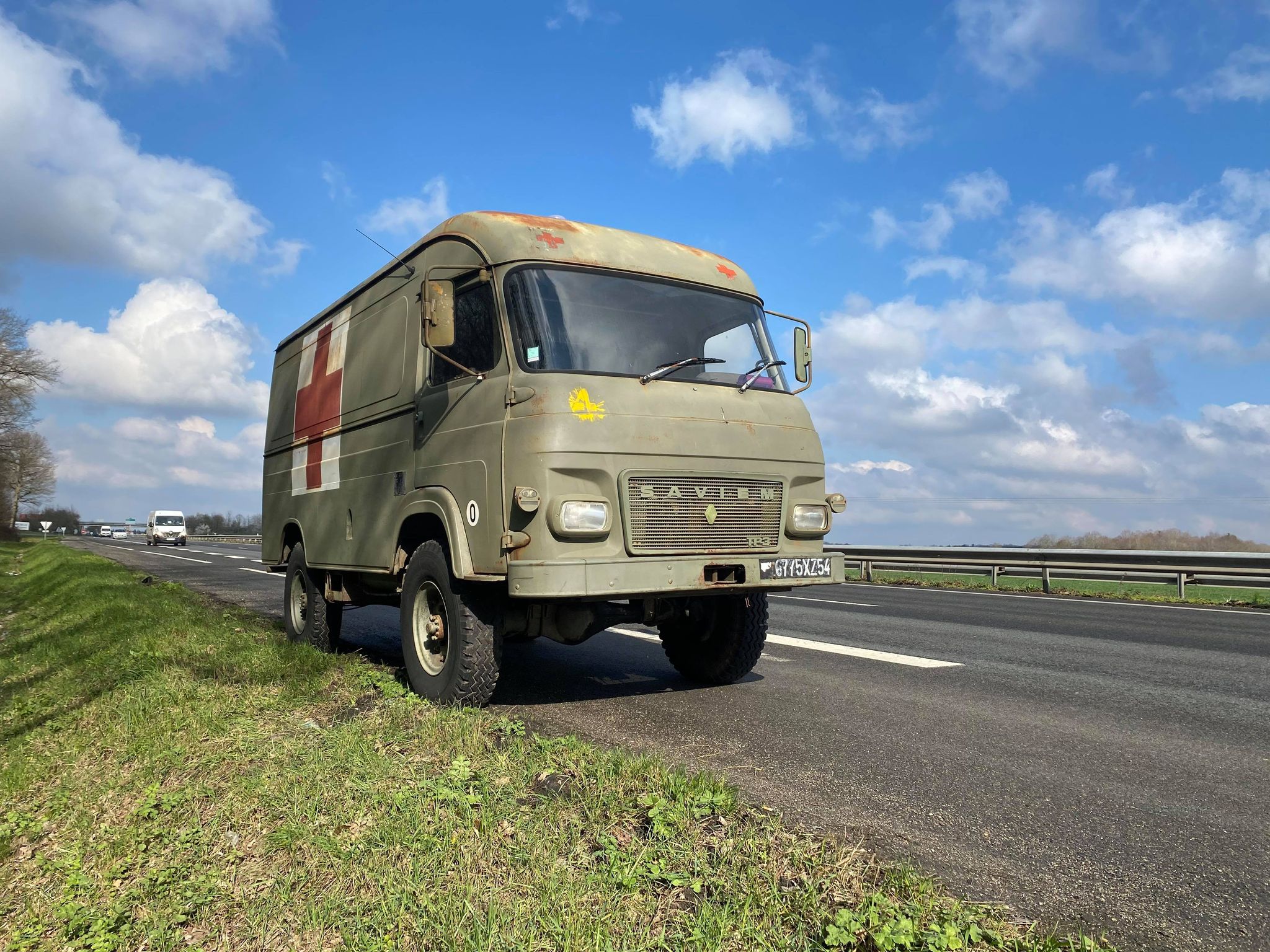 Je suis l'heureux propriétaire (je le dis encore tant que j'y crois !) d'un Saviem TP 3 4x4 ambulance de 1973 ; je fais déjà dans l'ancienne avec des VW aircooled, Cox, Combi, 181, etc ... et puis l'envie d'un véhicule utilitaire/publicitaire pour une nouvelle petite société .... et biiiiiiiim l'AVENTURE commence !