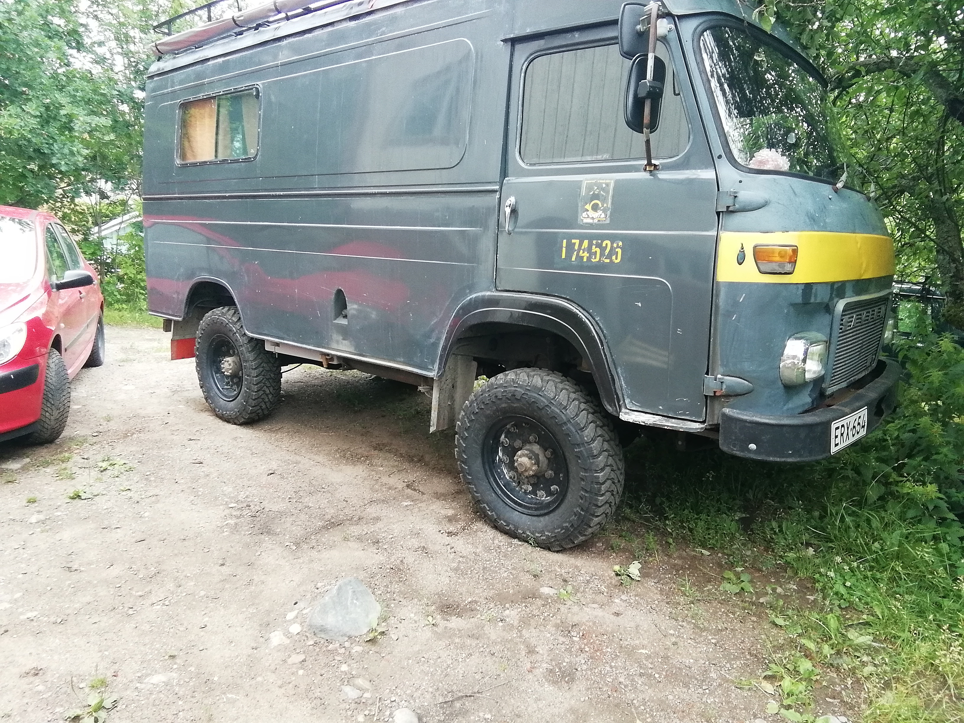 The engine is without supercharger. Nissan patrol 4-speed gearbox and transfer case. Consumption approx. 14l at 80km/h, which is a suitable traveling speed. A bit lazy but more comfortable than the 712. I have an 8x43 axle. Better would be a 7x44 and a 5 speed transmission. The car is now in winter storage I can't get pictures.