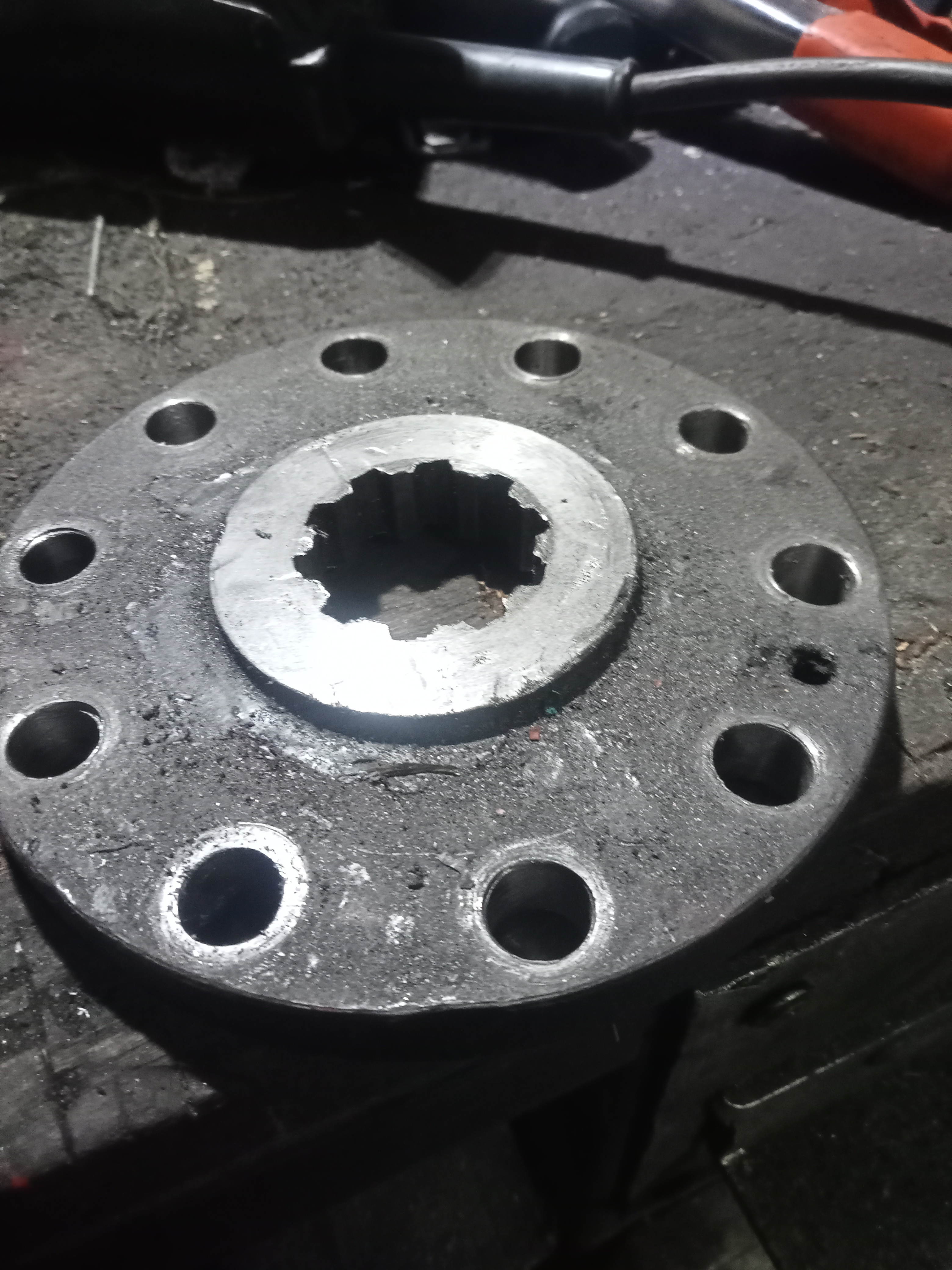 A pièce was cut from the original hub and grooves were machined on the outside.