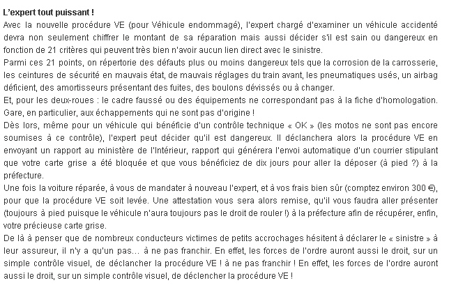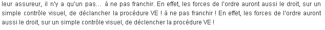 classé en (VE) même d'un simple "regard de travers" d'un représentant de la loi sur le bord de la route et qu'en qualité de conducteur l'on pourrait juger de discriminateur à l'égard d'un gros fourgon 4x4.