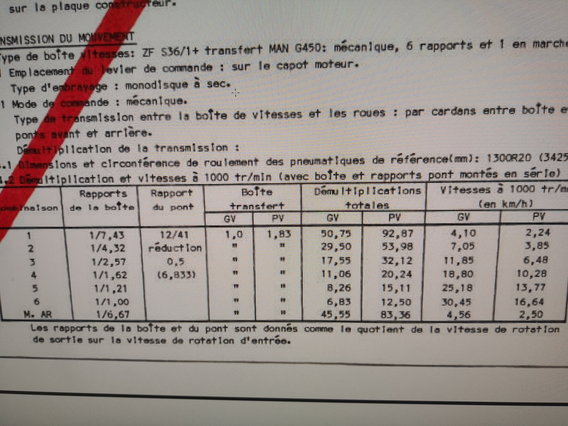 Aprés c'est que l'on m'a expliqué mais je n'ai jamais eu l'occasion de vérifier par moi même si les rapports de ponts étaient différents ou non . Je vous livre juste l'explication que j'ai eu en conduisant ces camions . Notre record c'est 112Km/h vent dans le dos