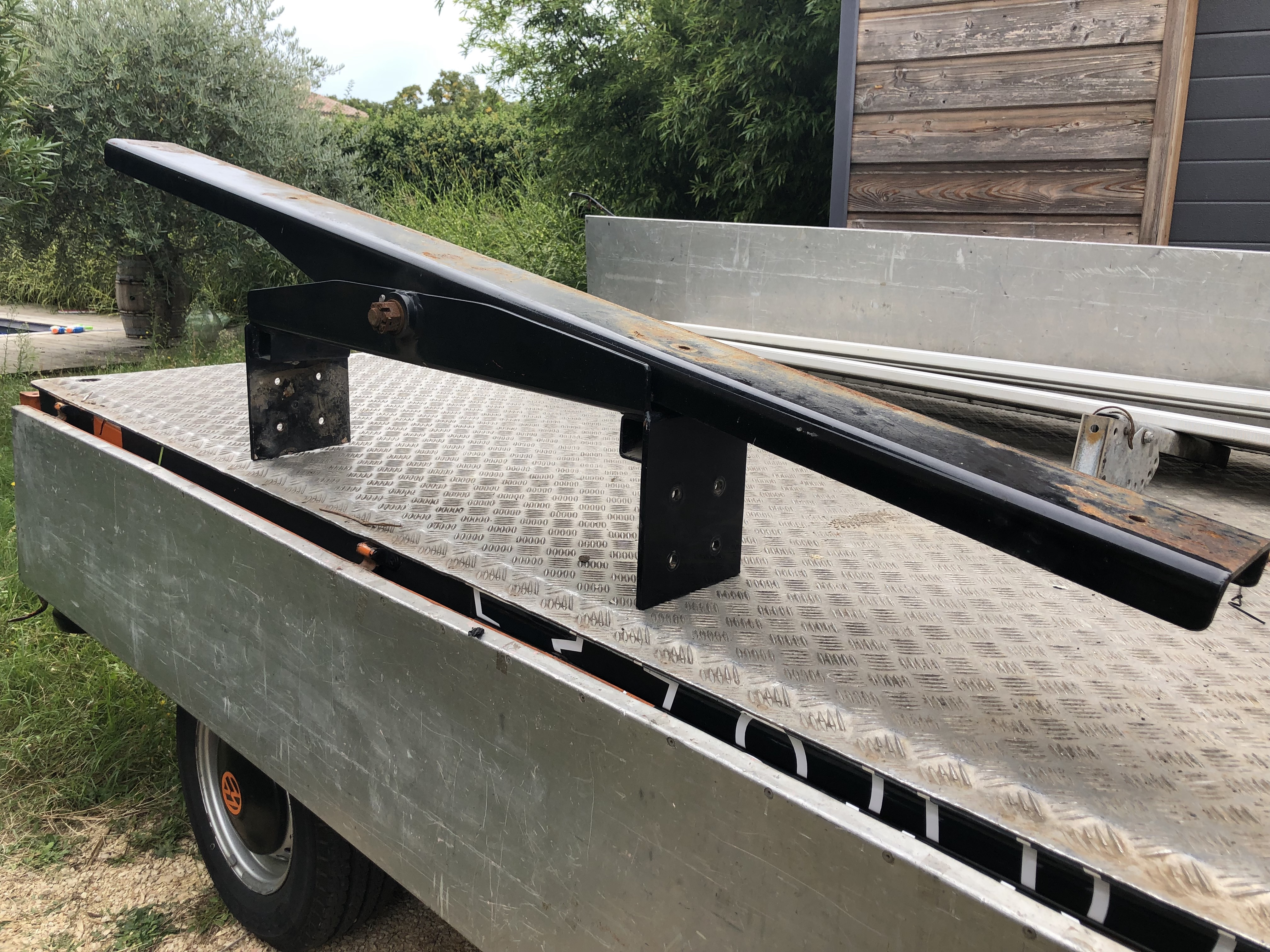 Suite au ménage fait sur notre camion, je me débarrasse de barres en anti-encastrement, un support pour 2 roues avec palan et un pivot arrière.