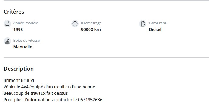 - ↳ Annonces de véhicules 4x4 (vans et camions) et pièces détachées aussi.