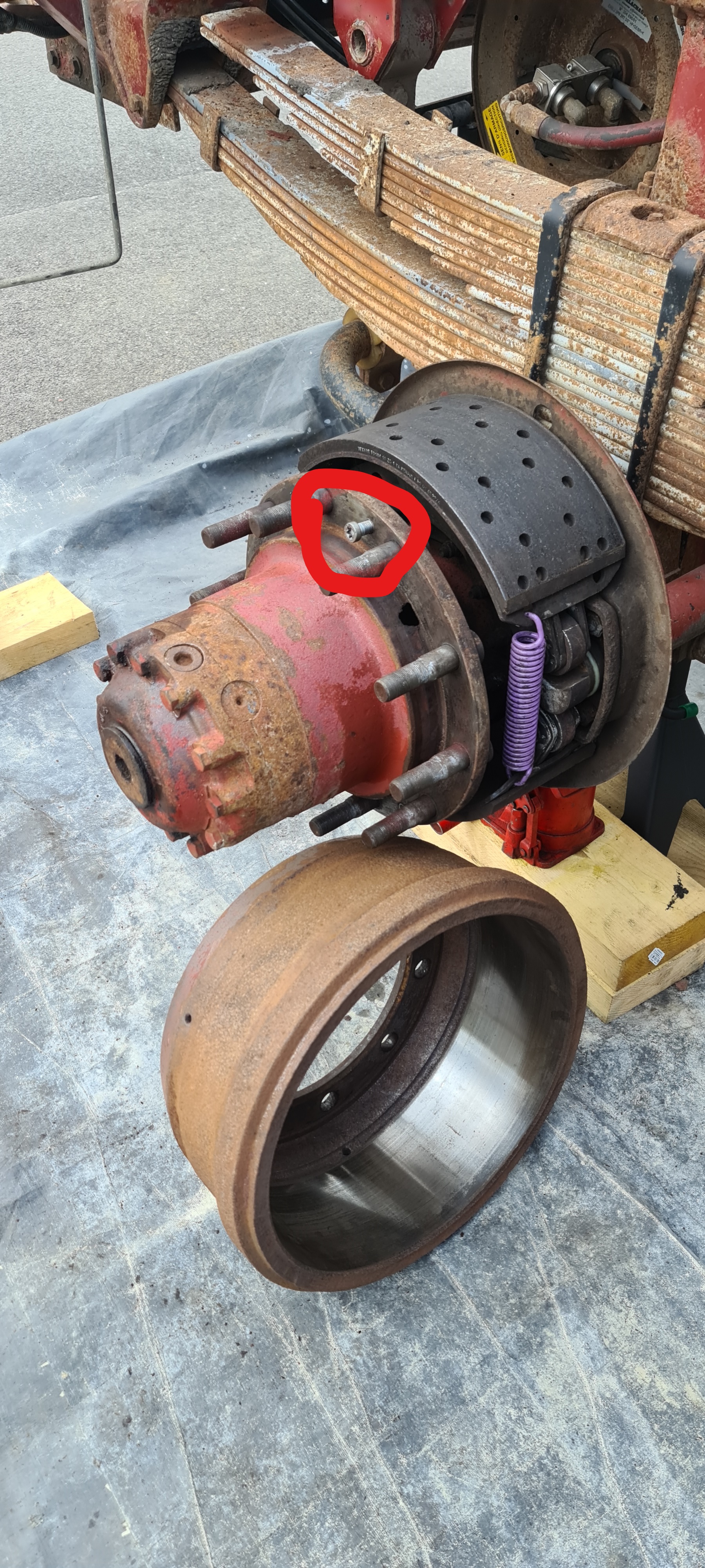 La on est sur les roues arrières la vis qui maintient le tambour est entourée en rouge, il y en a deux.