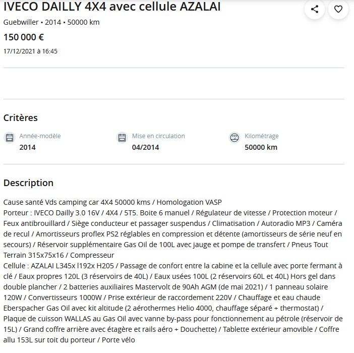 - ↳ Annonces IVECO 4x4 Turbo Daily récents