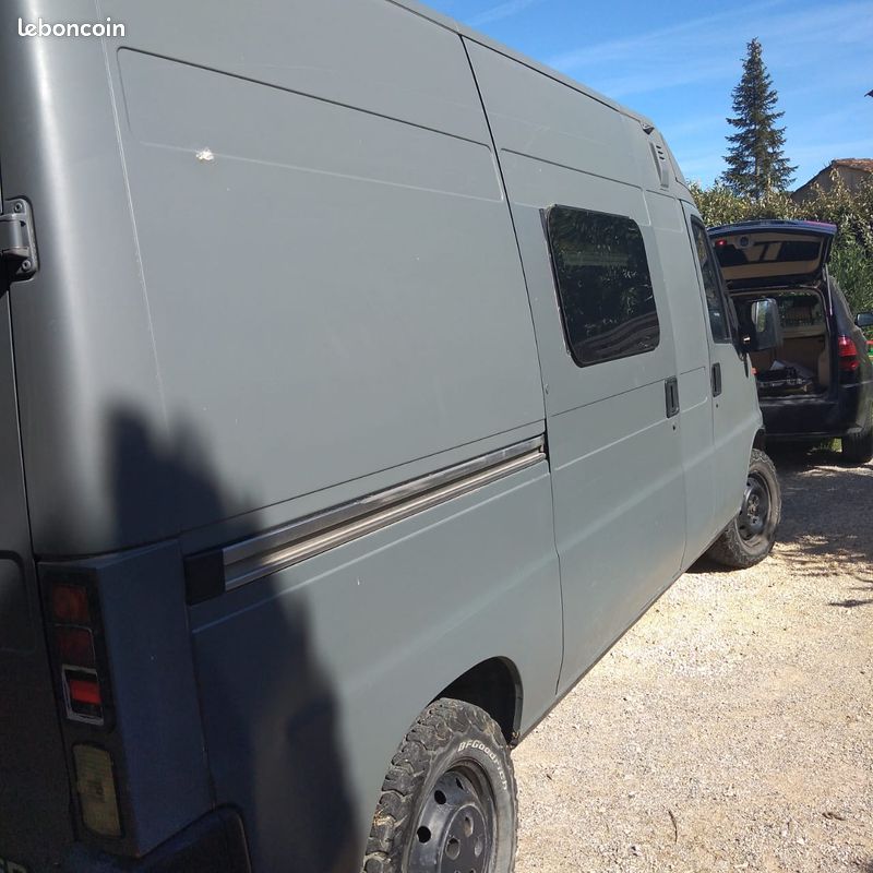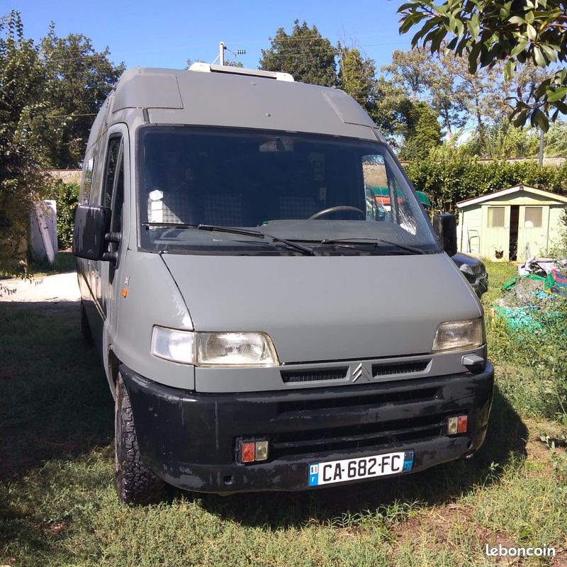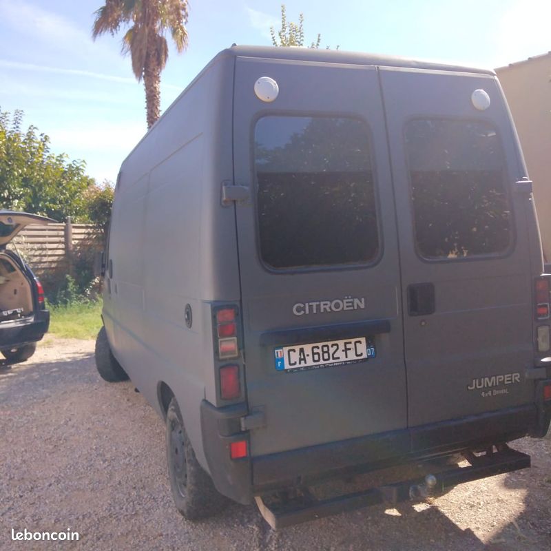 "Vends Citroën jumper 4×4 aménagé 1996 . Chauffage,eau chaude au gasoil. Frigo, réservoir d eau de 130litres. Panneaux solaire de 300 watt, batterie annexe au gel de 200 ampères, batterie moteur neuve, amortisseur avant neuf."