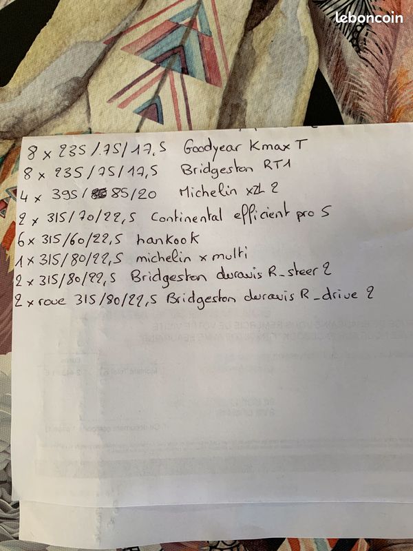 du 315 60 70 80 22.5 Du 19.5 du 17.5 Pneu se montant sur les véhicules comme scania volvo fh iveco stralis man tg tga tgl tgx Renault premium magnum mercedes atego actros samro fruehauf trailor leveque alcoa durabright porte engin plateau grutier chantier 6x2 6x4 directionnel Michelin continental bf goodrich dunlop barum fulda grumier actm daf cf xf isuzu porte char 4x2 4x4 8x4 8x6 8x8"