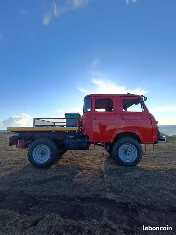 "superbe saviem tp3 4x4 comme base camping car tout terrain. double cabine, ex camion de pompier essence fonctionnant 100% éthanol, transformable hydrogène ou gaz.