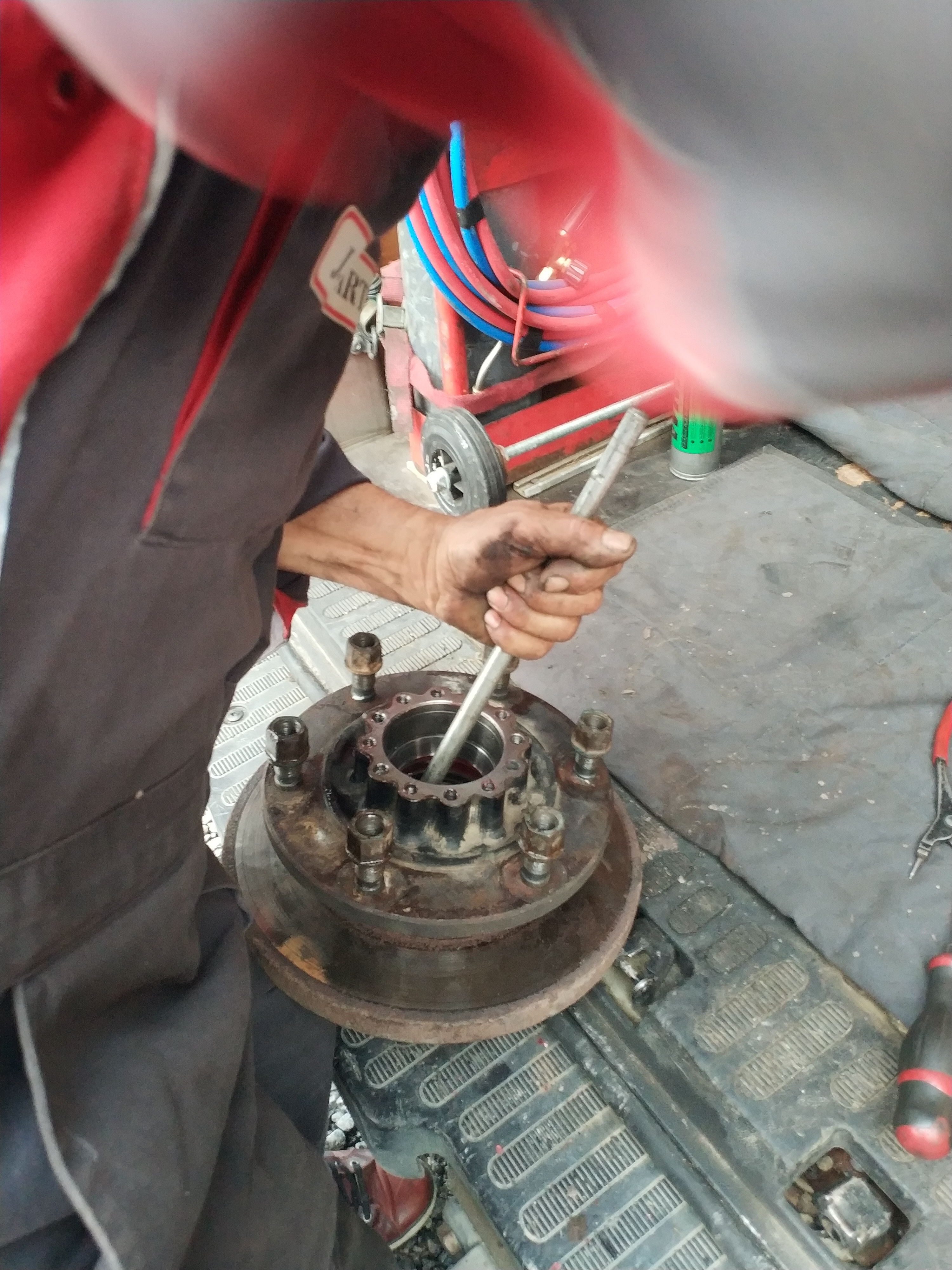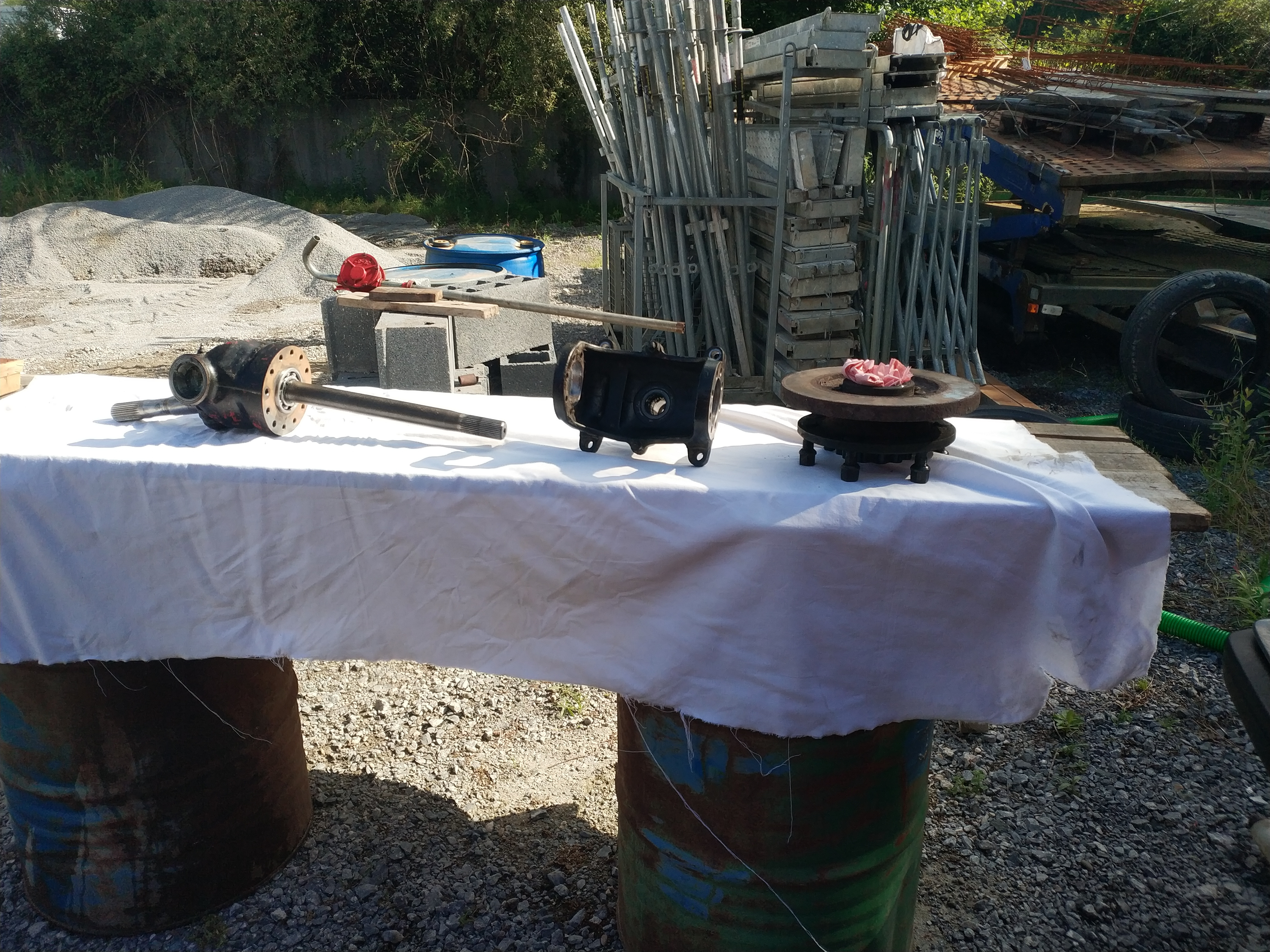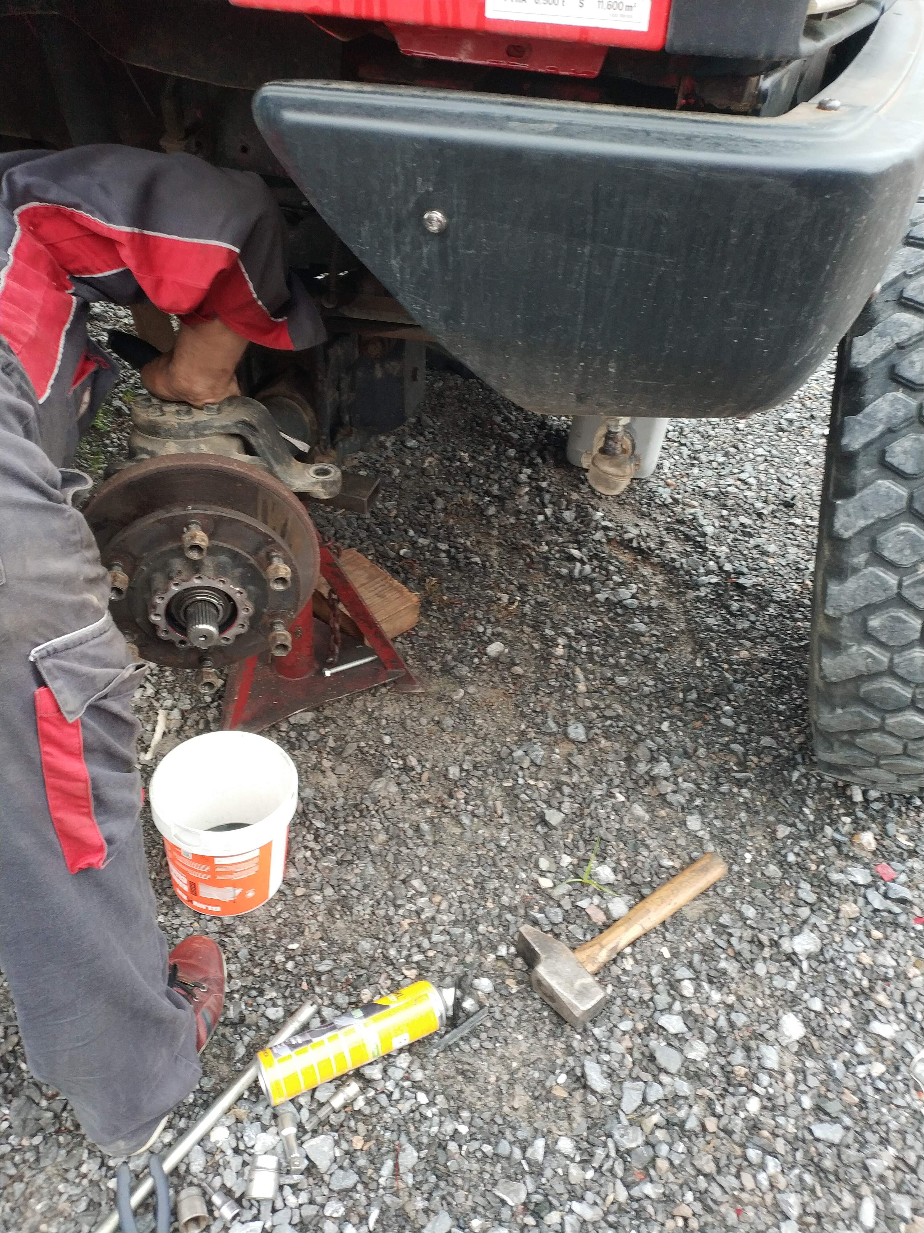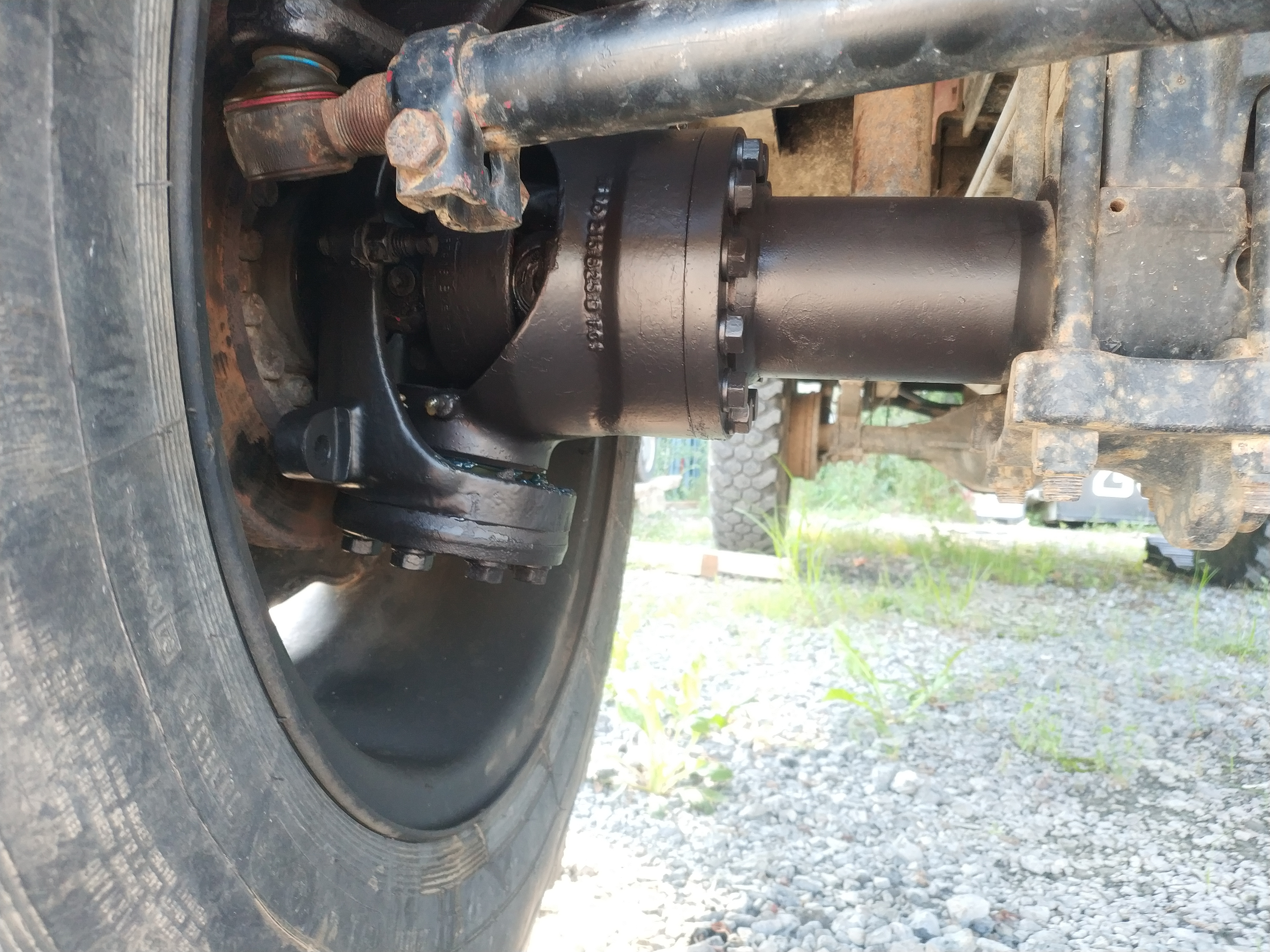 On remonte dans l'ordre : carter de pont et son demi arbre, pivot, levier de pivot (ne pas oublier les cales),moyeu, roulement, rondelle, écrou, penser à mater l’écrou, main meneuse, peinture.