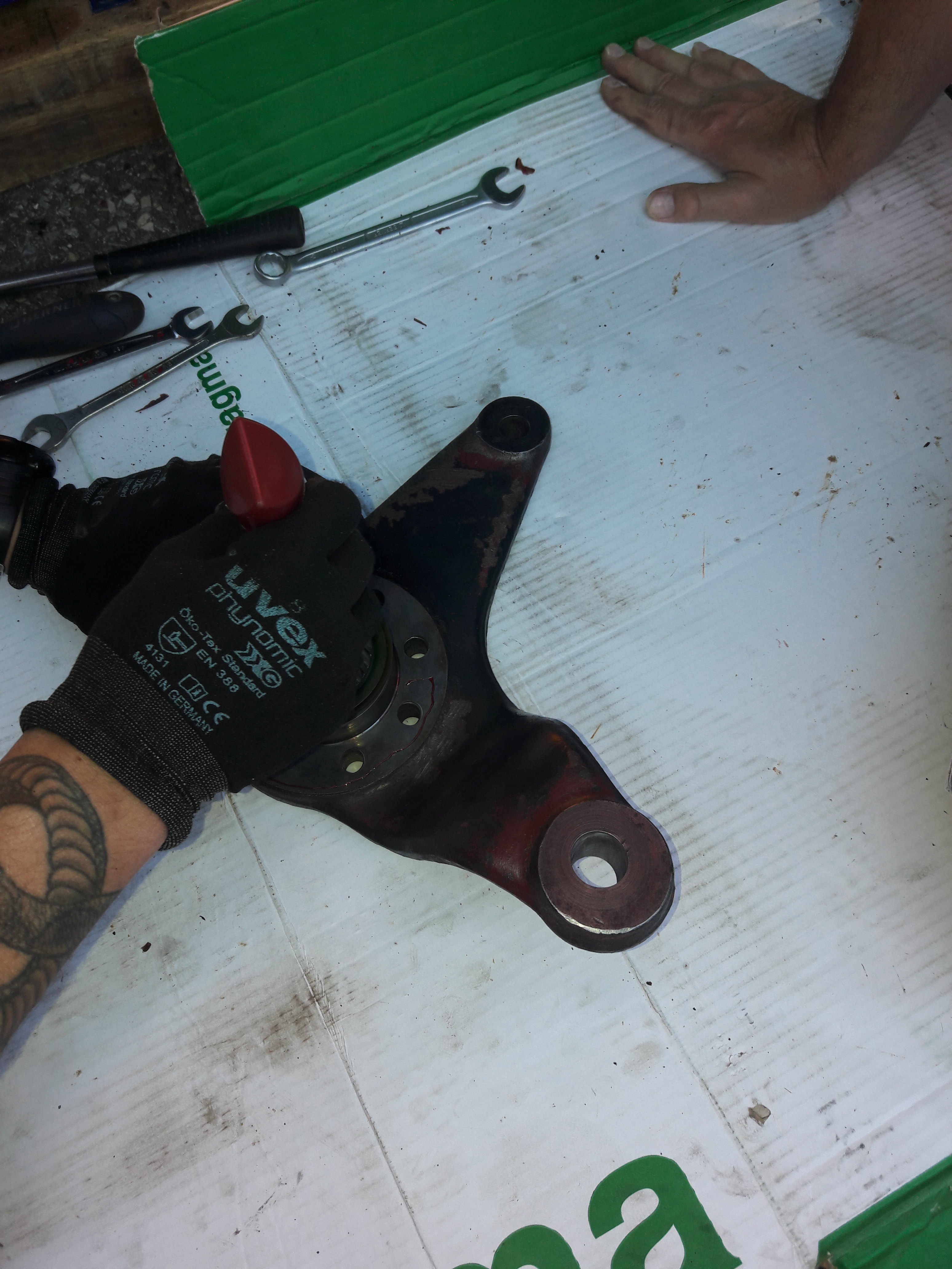 6) Bien nettoyer les surfaces : Pont, carter, pivot, les levier de pivot. faut retirer toute la loctite. Elle est très dur en tapoter gentiment au tourne vis puis papier de verre.