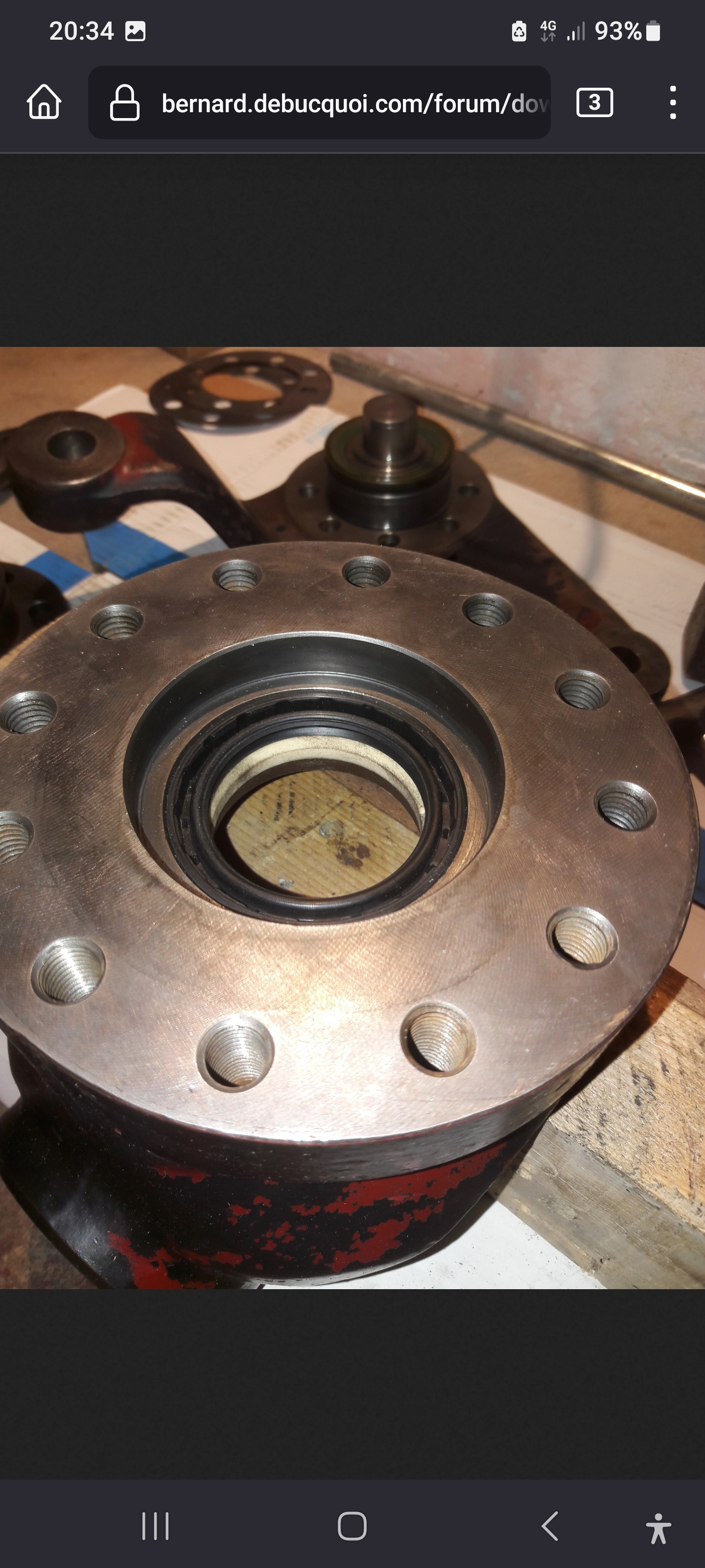 3) On sort le moyeu coté demis arbre le roulement est tenu par le joint. J'ai remplacé le joint par 2 joints spi standard 75x95x10 et conservé le roulement.
