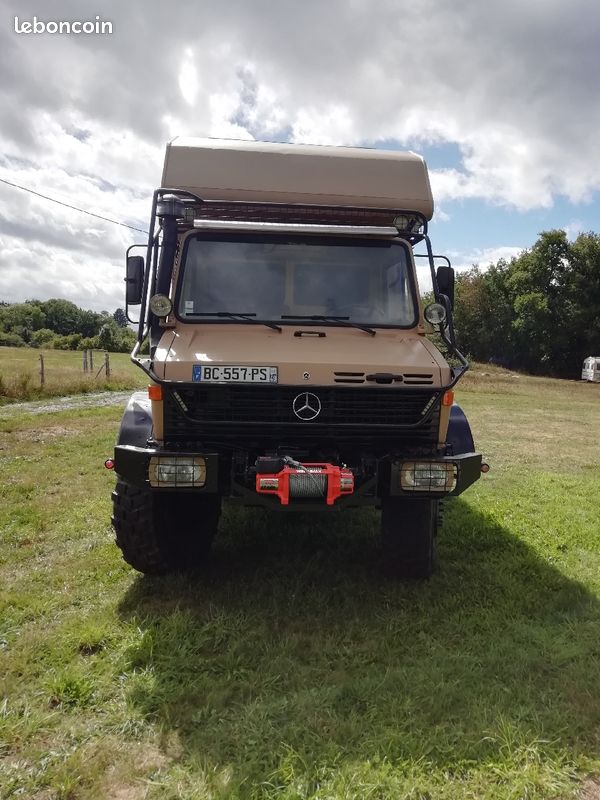 Mecaniquement: tous les freins ont été refait. Boite de vitesse, embrayage, volant moteur neuf mercedes. Radiateur plus gros et excentré. Toutes courroies changées. Meilleur système de filtration gasoil. Batterie optima. Pare brise chauffant. Feux de travail leds. Feux ar leds. Treuil 10t. Double reservoir jumelé avec vannes protégés par les rampes de desensablage qui sont demontables rapidement. 5 pneus changés il ya 200km. Pare branche cabine sur mesure. Casquette inox pour le soleil. Feux de recul led et bip ar. Caisse monté sur système 4 point a bascule provenance unimog france.