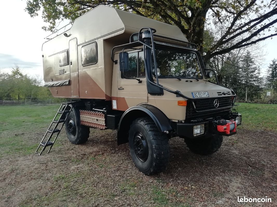"Mercedes Unimog u 1700l. 4x4. POID LOURD. Carte grise 3places Poid lourd. VASP. 8 vitesses etage. Turbo. Modèle renforcé. 2 embrayages. Prise de force. Prise hydraulique avant et arriere. camping car grand raid.