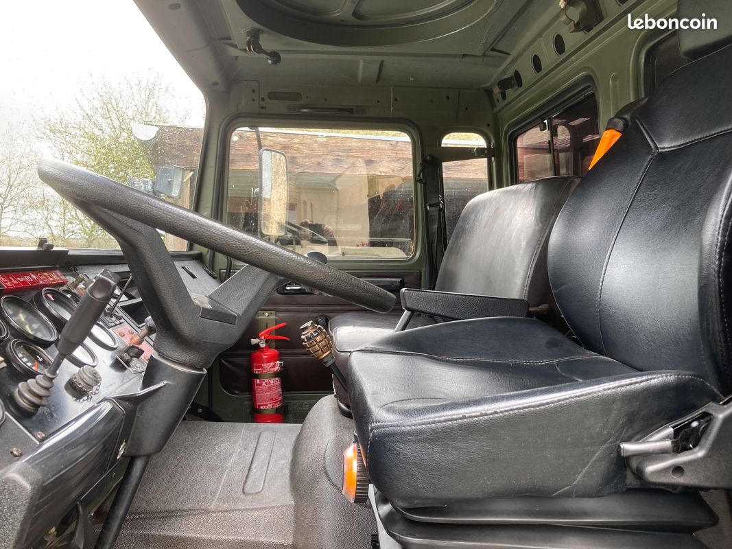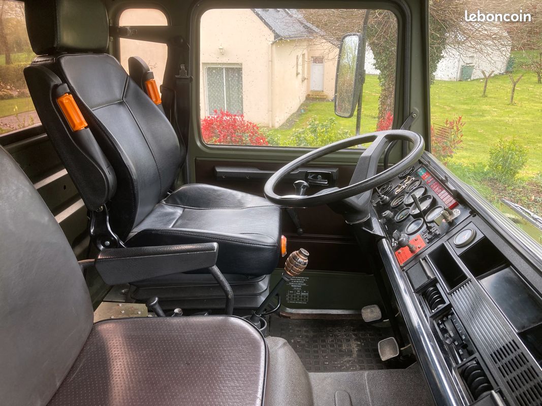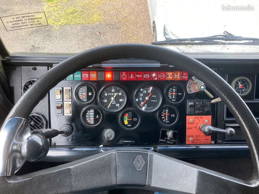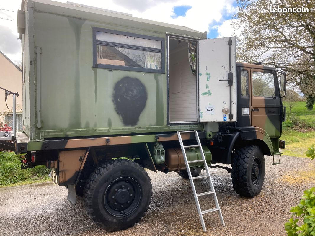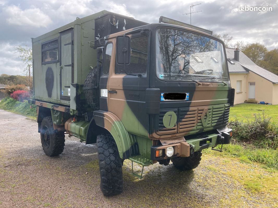 "TRM 2000 aménagé, 4X4 permanent avec blocage différentiel, ancien véhicule de gendarmerie, très peu roulé et n'a jamais fait de franchissement. Permis poids lourd. Carte grise collection, pas besoin de CT ni pour l'achat ni ensuite, art R323-3 du code de la route. Porteur (état collection) 15 CV GO 3 places (L5.20m/l2.20m/H3.50m). Cellule frigo L2.80m/l2m/H2m aménagé en 2020. 2 couchages, eau (pompe électrique), évier, glacière, WC mobile, éclairage LED, panneau solaire, batterie, nombreux rangements."