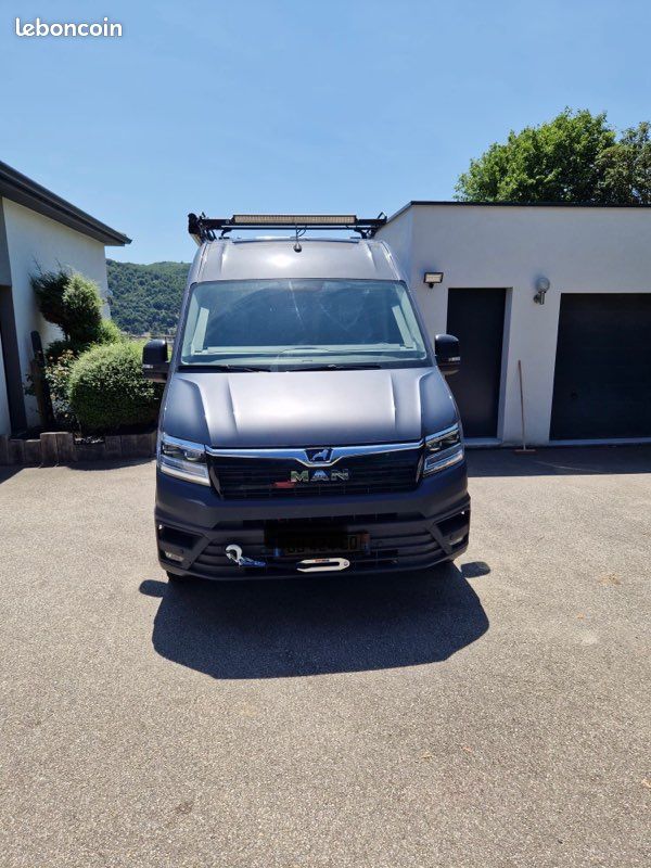 "Véhicule pour connaisseurs…introuvable, MAN TGE 4x4 150cv, boîte 6 rapports Manuel, achat en concession volkswagen en septembre valeur 64000€ configurateur man sur internet ( sous garantie constructeur) à la base un utilitaire ( tva récupérable pour les assujettis), fulls options, siège suspendu, tissus robuste, full leds, attache remorque, radars avant et arrière, camera de recule, abs, air bag, peinture black, blocage de différentiel, etc…en cours d’aménagement camping car, isolation phonique et thermique, fenêtres et lanterneau, avec rideau thermique, isolation plancher, revêtement bois intérieur, galerie de toit avec échelle et jerrican, projecteurs avant et arrière leds osram, caisses de chargement, supports store, (frontrunner)à vendre cause changement de projet, véhicule aucun défaut non fumeur, véhicule rare sur le marché de l’occasion …idéal pour projet d’aventure à saisir 59000 ttc"
