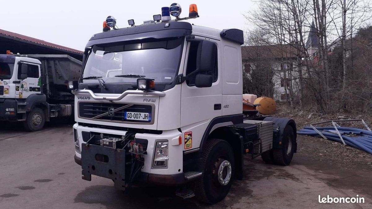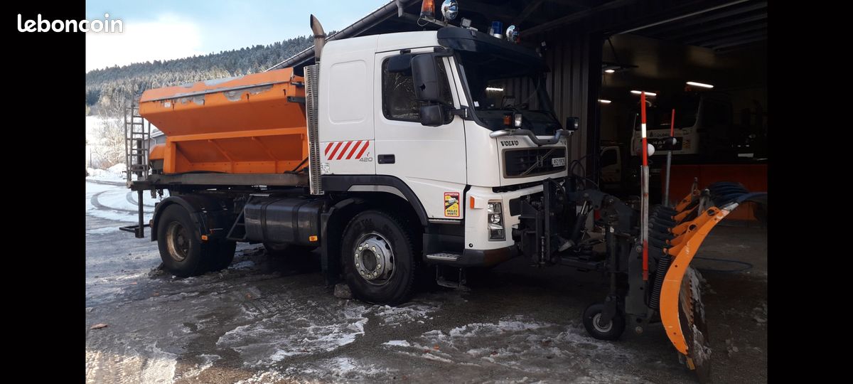 "Vend Volvo FM 12,de 2006, 368000 km, 4x4, boîte automatique convertisseur de couple, équipé neige saleuse Schmidt 5 M3 commande en cabine caméra hydraulique plaque Setra pneus hiver neuf et pneus été,9000€ de facture récente ***le camion peut être vendu séparément des équipements neige*****"