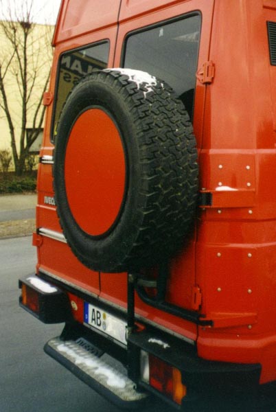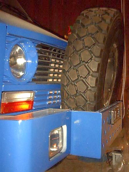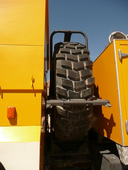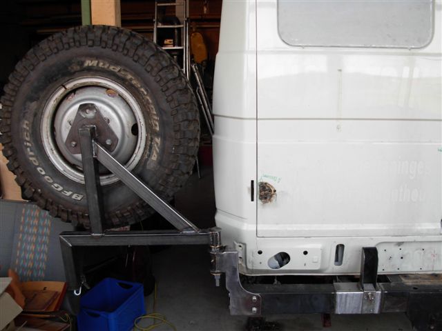 je me balade depuis l'achat, avec ma monstrueuse roue de secour 900R16 à l'arriere sur le sol... et j'aimerai bien faire au moins un porte roue pour la mettre derrière le véhicule...si c'est pas 2 comme Guy pour les voyages lointains...