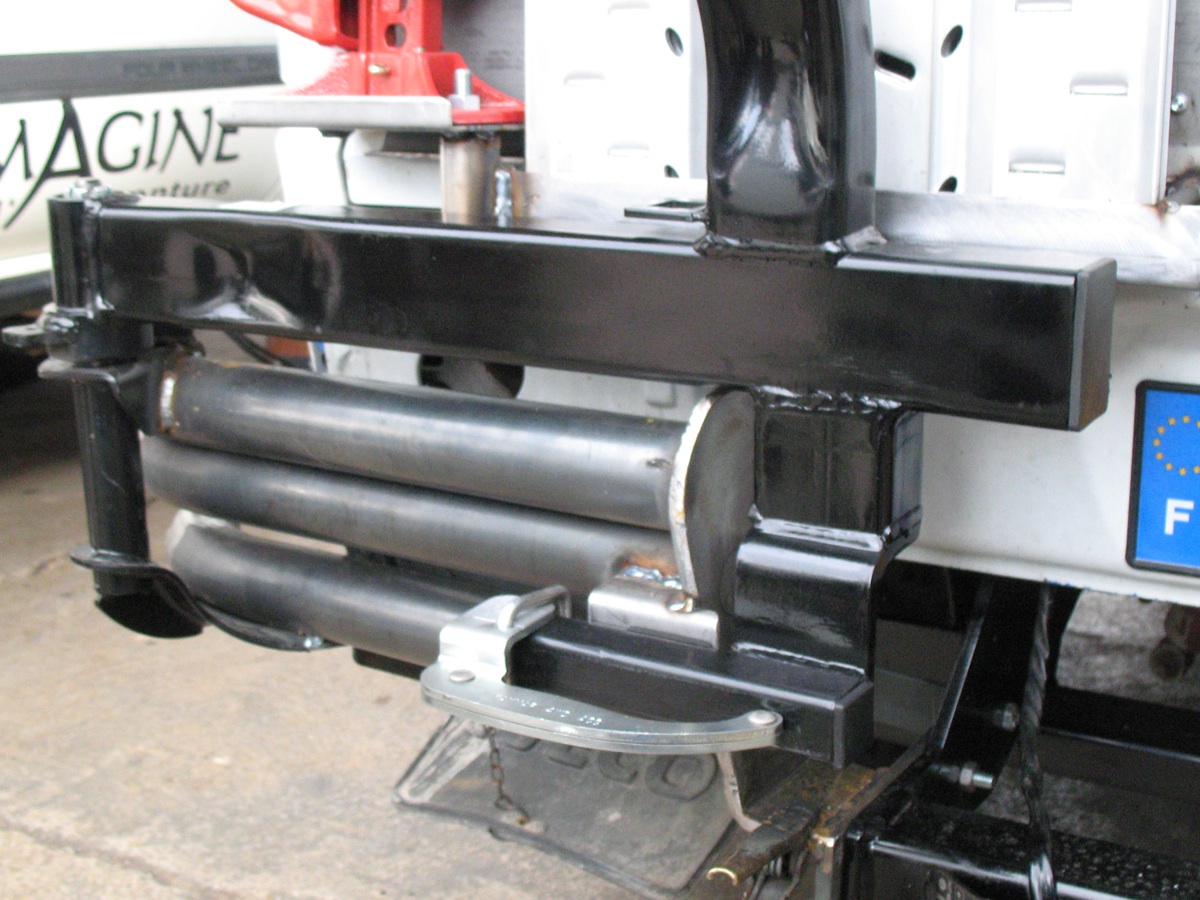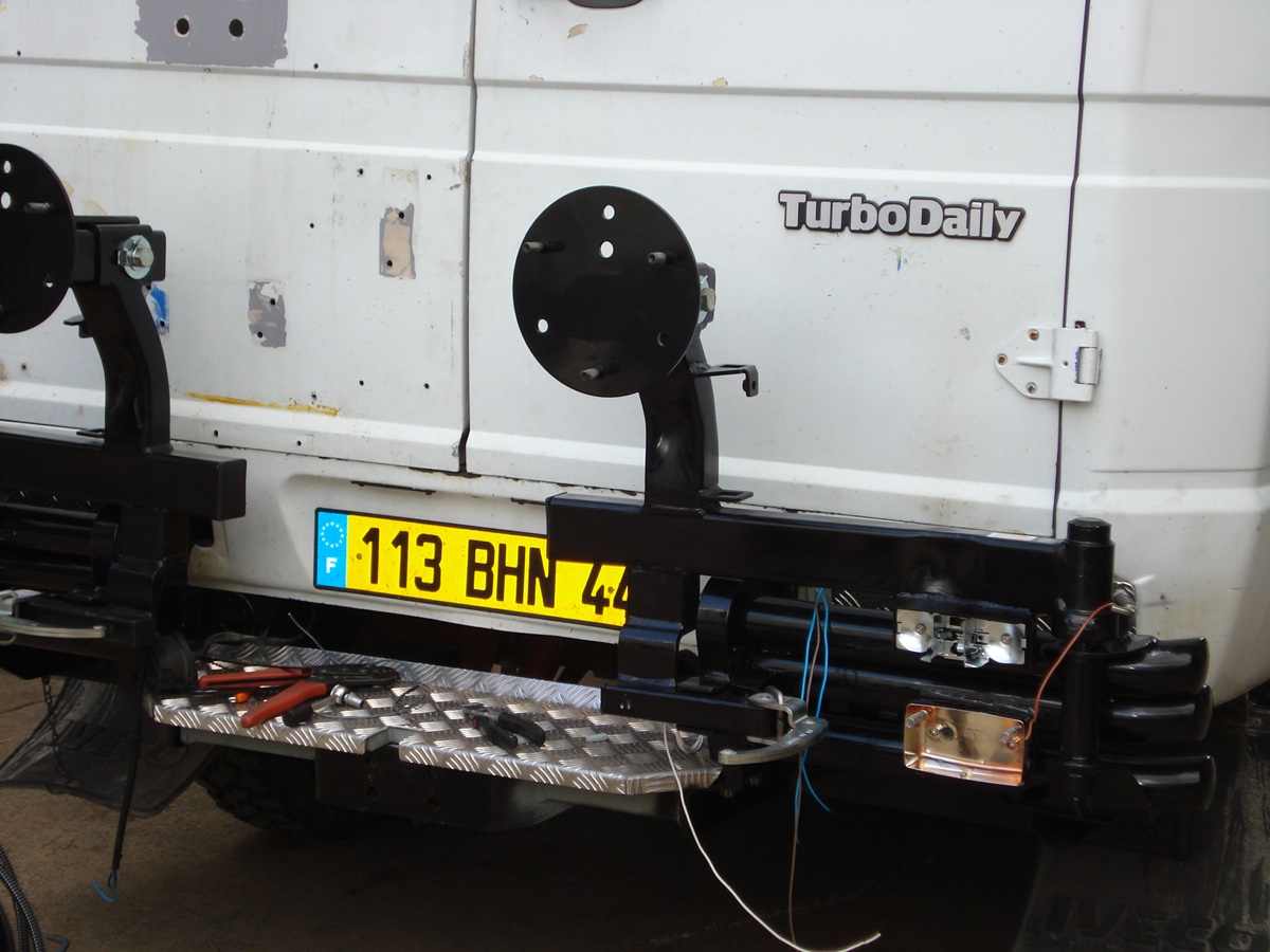 en attendant vos commentaires je vous laisse admirer le travail de Nicolas, je ne sais pas quels éléments sont prélevés sur de l'existant et les quels sont spécifiques...Guy a une réalisation similaire sur le siens, faite par Paris 4x4 sur la base d'un porte roue Kaymar (je sais plus comment ça s'écrit) je dois avoir une ou deux photos également.