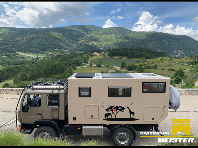 Châssis MAN 1995 et construction de camping-car 2017. Avec des mises à niveau de la climatisation de la cabine, du système d'eau chaude, du porte-roue de secours, du système solaire, du stockage, de la lumière de toit, de l'auvent, des feux de camion et plus encore en 2019. Enregistré au Royaume-Uni en tant que caravane privée pour poids lourds, pas un Véhicule de transport de marchandises poids lourds privé. Actuellement immatriculé à un GVW de 8,6 t mais peut être réimmatriculé à 7,5 t. - MAN L2000 deux et quatre roues motrices, construction 1995 (avec blocage de différentiel et rapport bas sélectionnable) - D0824LFL01 6 litres / 6 cylindres. moteur 250Ps - Manuel ...En savoir plusLes attributsAnnée de construction - XXXX2017Année unitaire1995Kilométrage392267KMch/kW171CarburantDieselTransmissionManuelCaractéristiques du véhicule