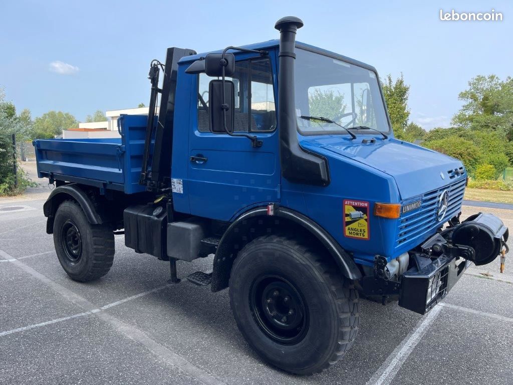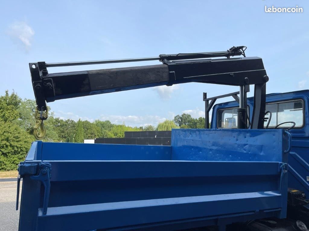 J'ai actuellement en stock un UNIMOG U1250 Tri-benne et grue de 1992 en très bon état, disponible de suite.
