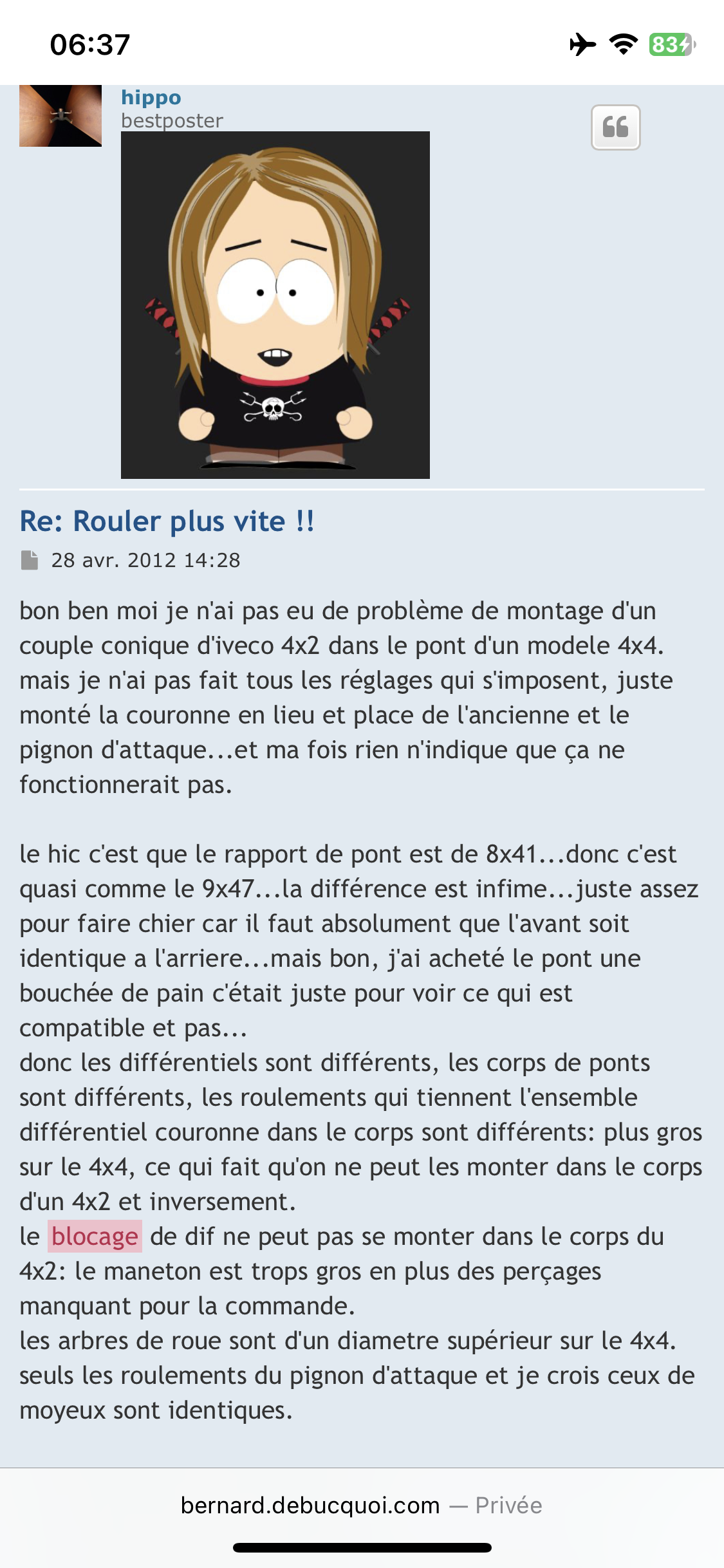 Maintenant j ai acheté un pont à blocage de différentiel de 35/15 que je comptais monter complet en remplacement du mien mais plusieurs problèmes m en empêchent j ai pas les étriers et ils sont introuvables à prix correct , 1 disque mort , frein à main diffèrent du mien qui a des mâchoires et tambours … je ne peux pas reprendre les éléments du mien car incompatibles et même l orientation des supports d étriers est différente :/