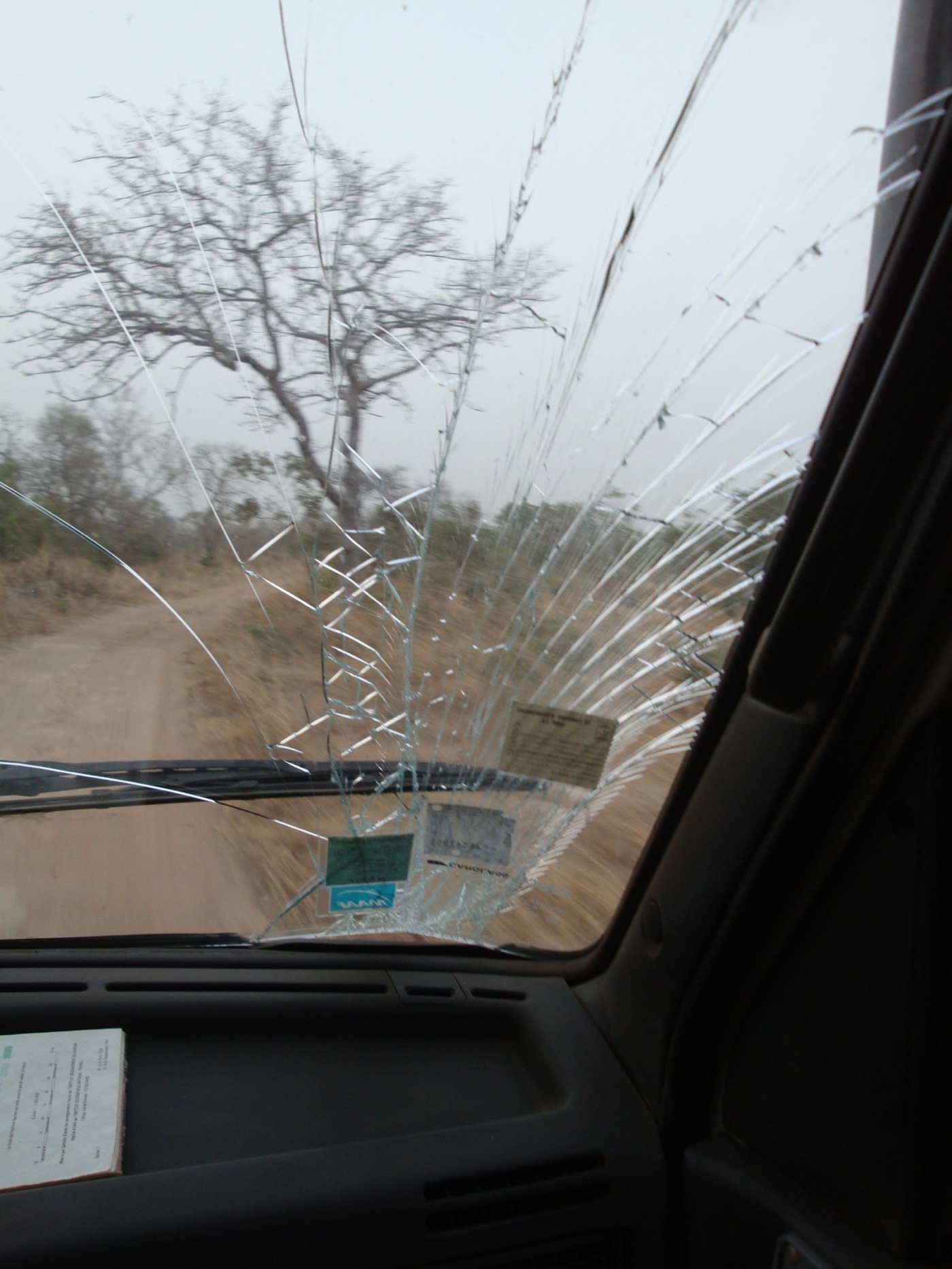 Pour Pascal, il est vrai qu'ils ne sont pas bien vieux mais quand même 130 000 kms et ils ont beaucoup souffert (de plus j'ai les 2 avant qui fuient) sur des pistes très cassantes avec des nids de poule où on peut mettre une vache. J'en ai pris un un peu vite car je ne l'avait pas vu, résultat la caisse à pris un mauvais mouvement et mon pare-brise à sauté.