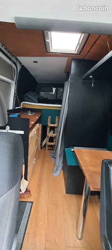" sprinter 4x4 aménagé. Lit, douche, coin cuisine avec évier, table, siège conducteur pivotant ..."