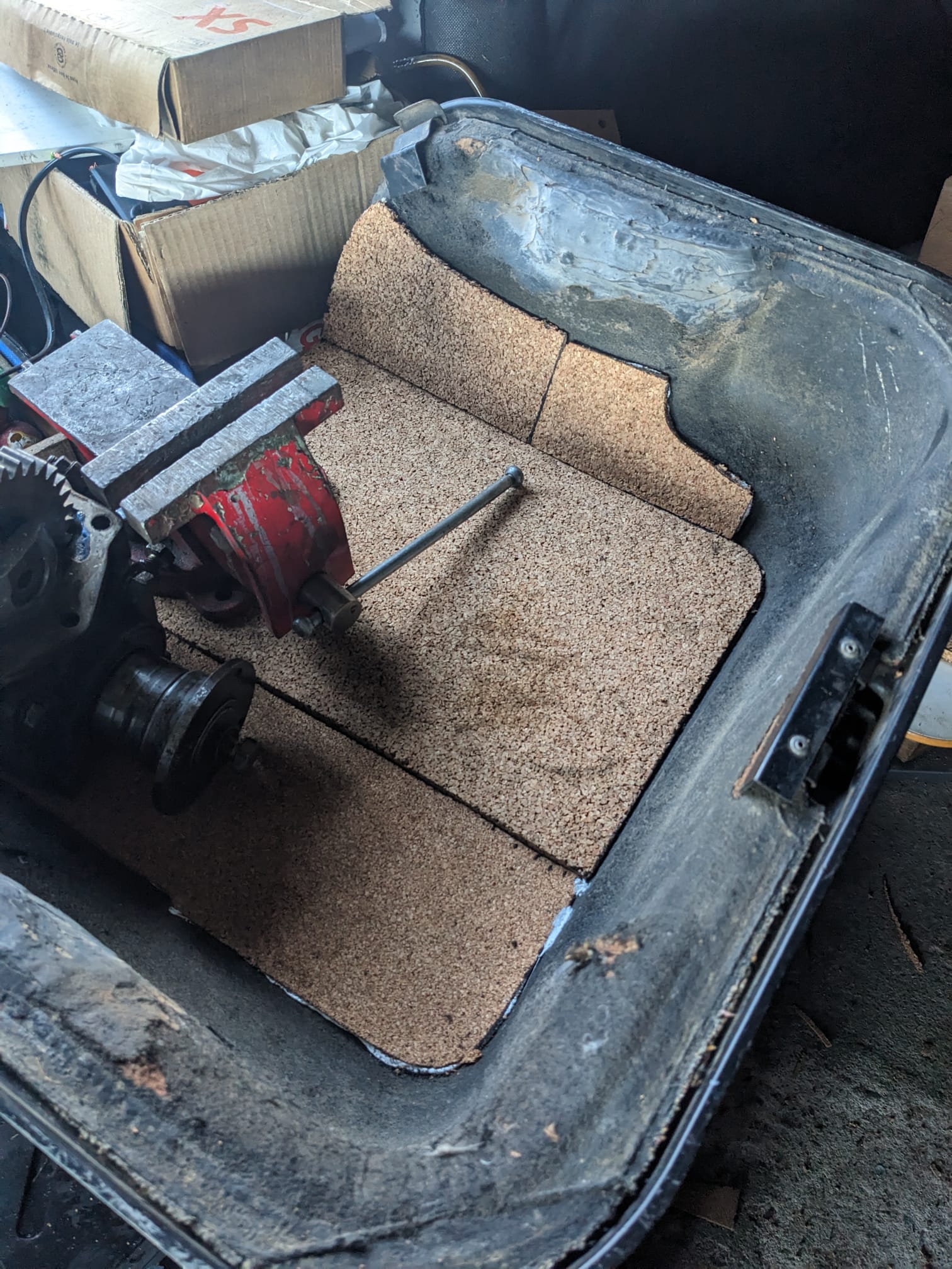 Puis la 2eme phase d'isolation phonique, particulièrement efficace, le liège expansé en panneau de 14mm et rouleau de 2mm.