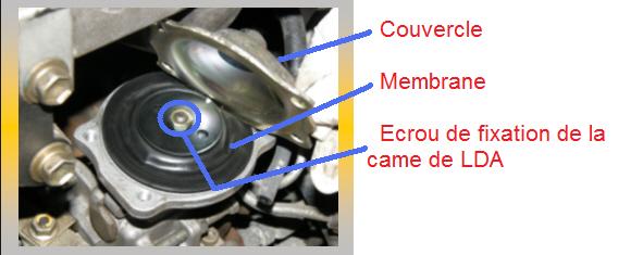 Une fois la membrane et sa came retirées, vous verrez sur la came une bague en plastique qui coulisse le long de la came, elle sert à limiter la course de la LDA (donc cette fameuse came fixé à la membrane), il faut adapter son épaisseur pour que la came puisse descendre jusqu'au point de débit max à pleine charge du turbo.