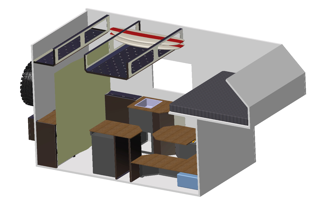 - C'est un double cab, et donc 5 couchages à caser, d'où la nécessité de la capucine. (Nous aurions pu faire l'impasse sur la partie confort, le stockage et réduire la partie cuisine au plus simple, c'est vrai aussi.)