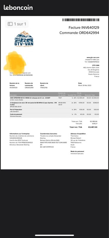 Bonjour vend kit réhausse +5 cm pour Mercedes sprinter