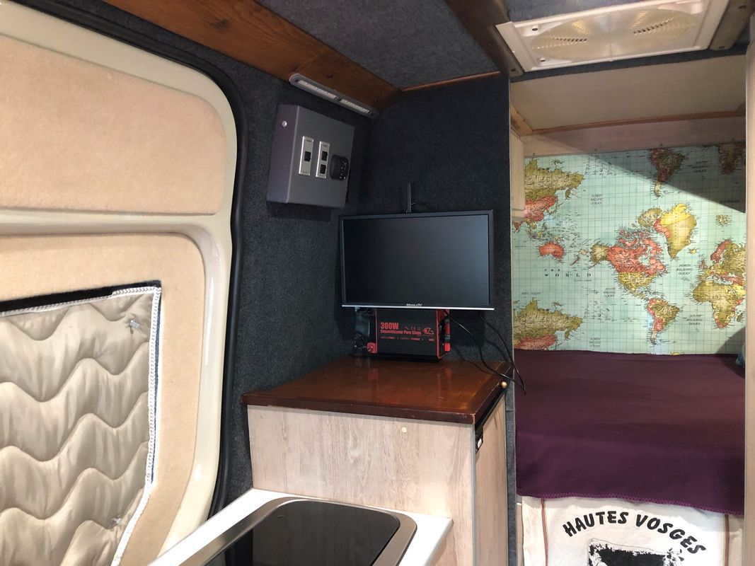 Mercedes sprinter 4x4 aménager par loisirs 12 carte grise 2places chauffage webasto gazoil chauffage au gaz convecteur 220 télévision douche wc a l’intérieur panneau solaire