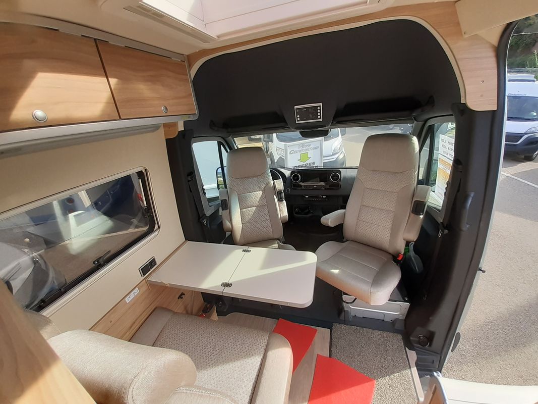 - Sièges conducteur et passager, chauffants + soutien lombaire, accoudoirs et banquette accordés au tissu de la cellule, pivotant, inclinables et réglables